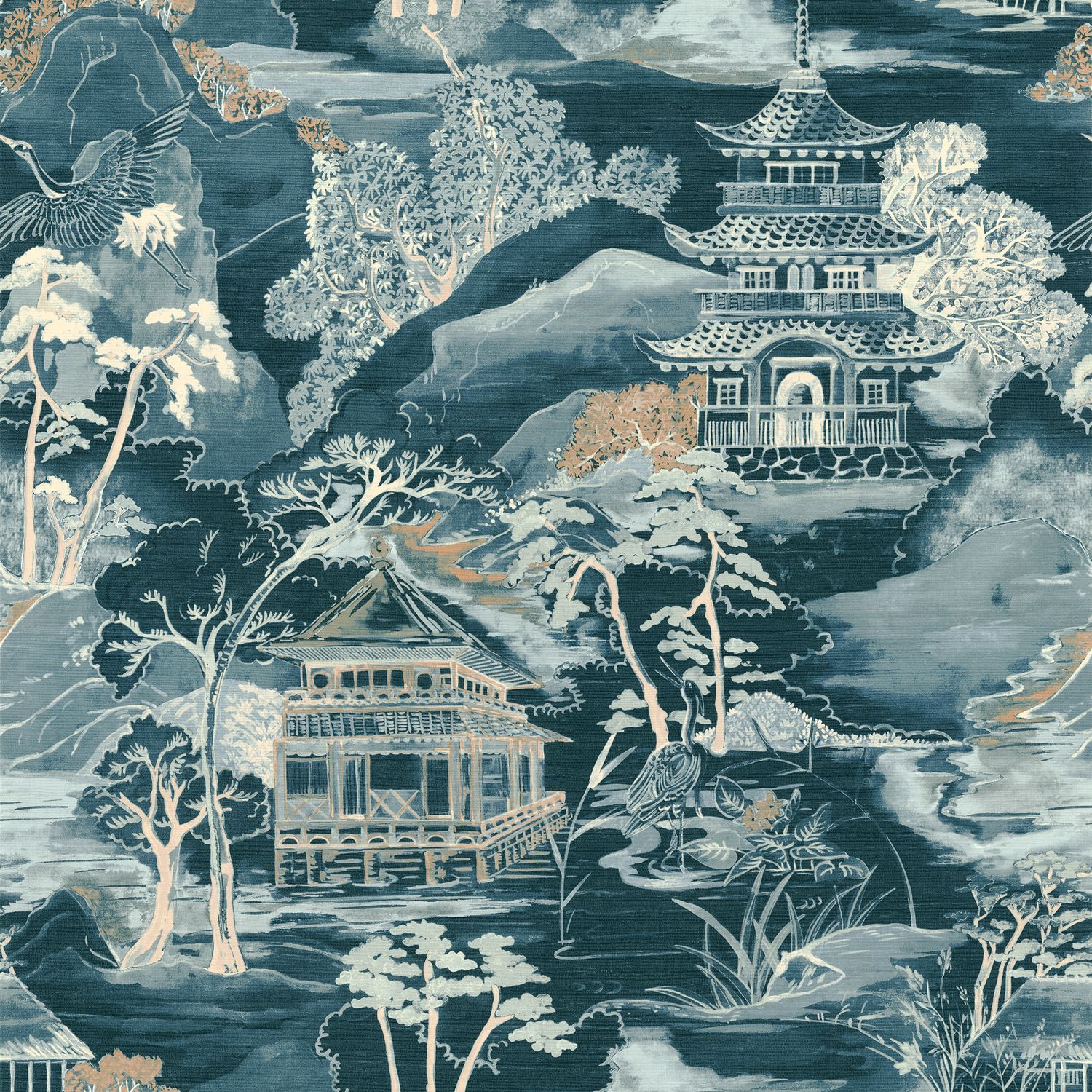 Štrukturálna tapeta s orientálnou krajinou NARA - TERRACOTTA terakota