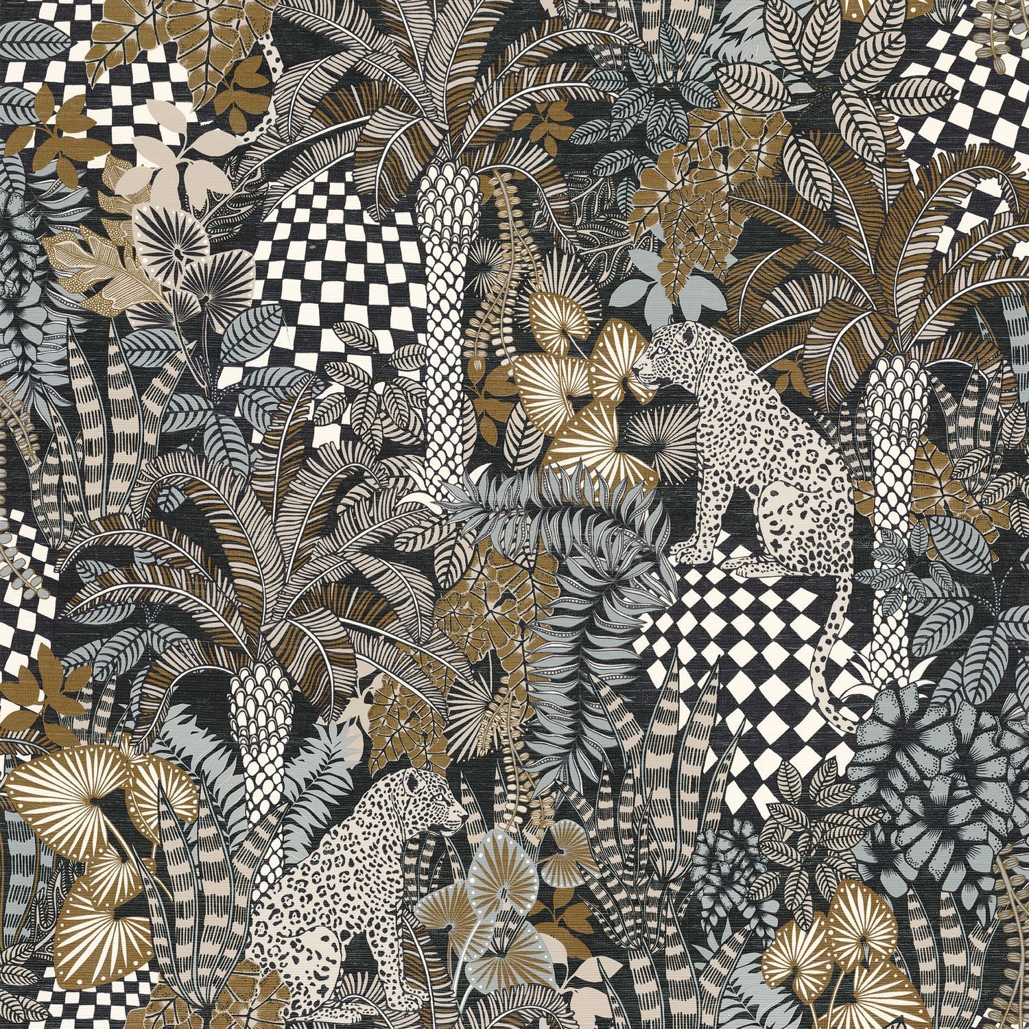 Tapeta s rastlinným motívom DENDERAH - NOIR/MULTICO čierna so zlatou