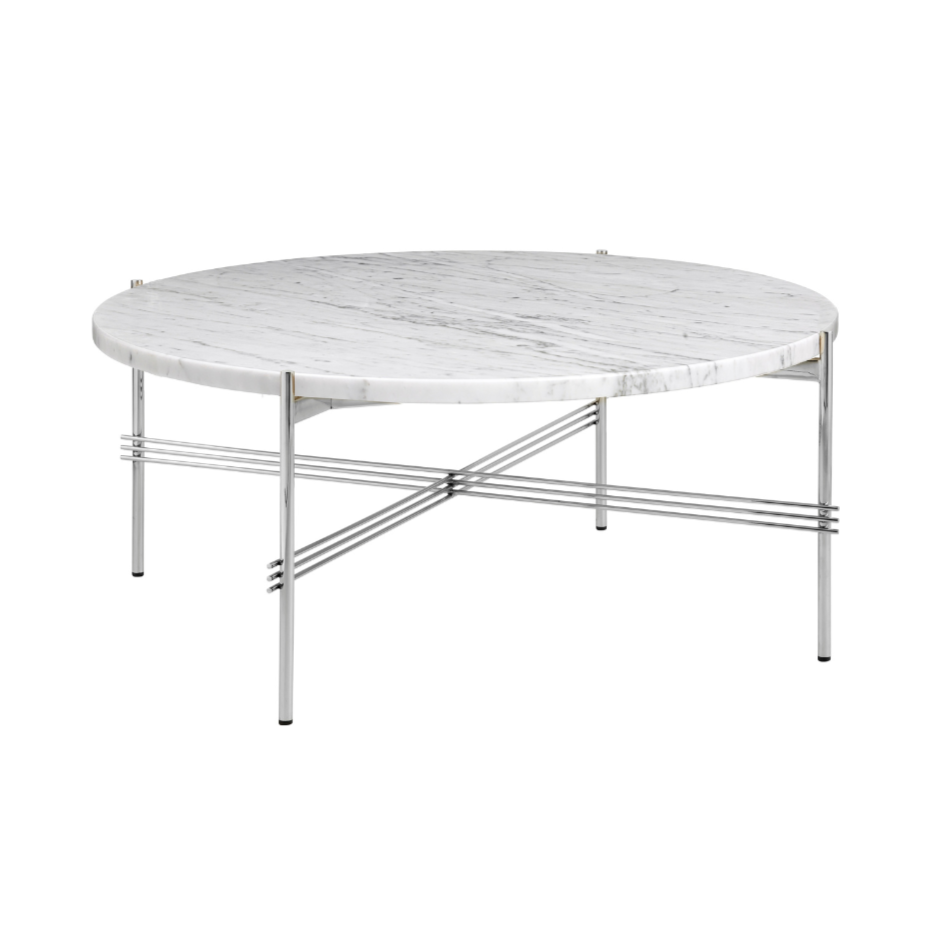 Kulatý konferenčný stolík TS biely mramor s chrómovým podstavcom