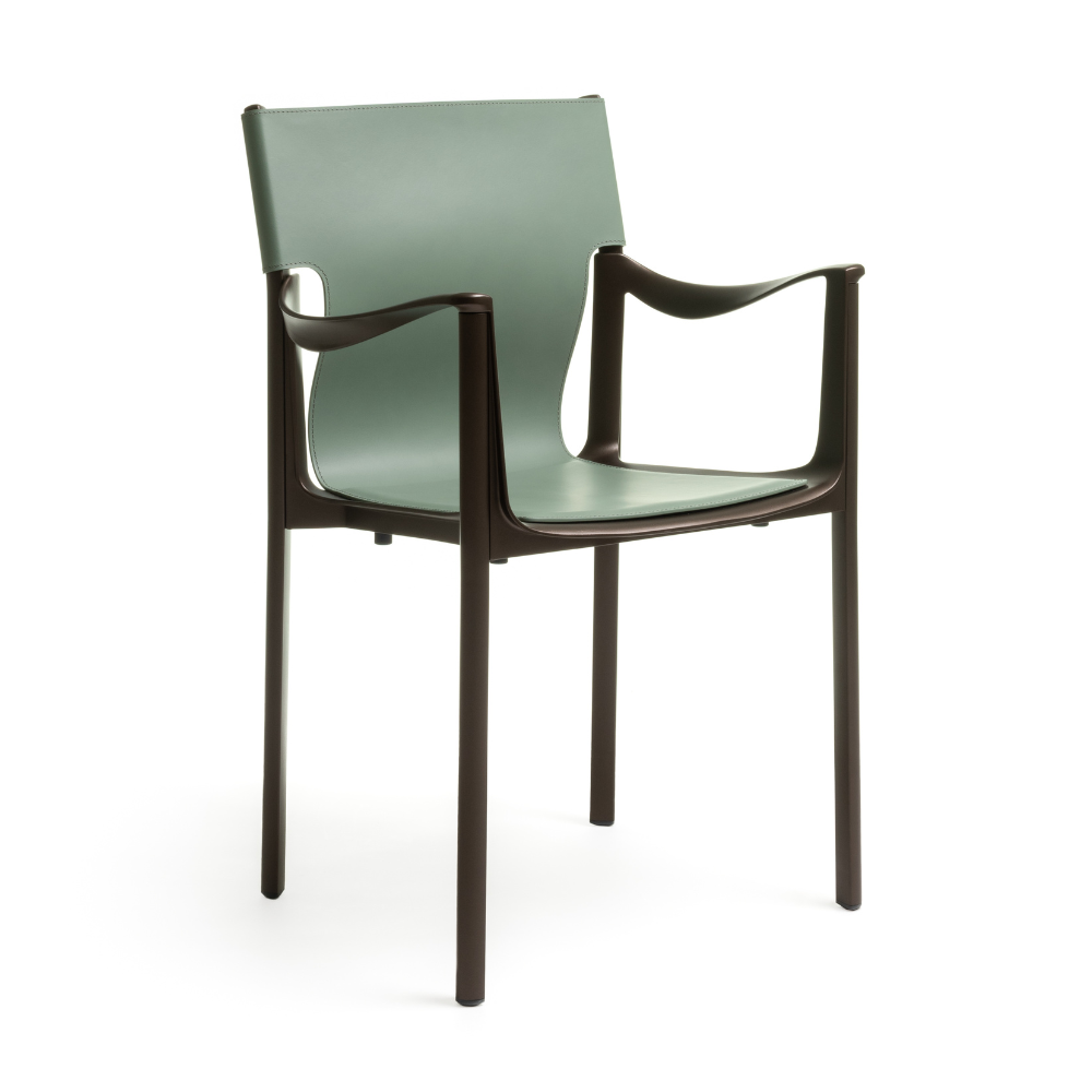 Krzesło z podłokietnikami FOYER melanż brązowy z metalową podstawą Calligaris metalowa matowa czerń   Eye on Design