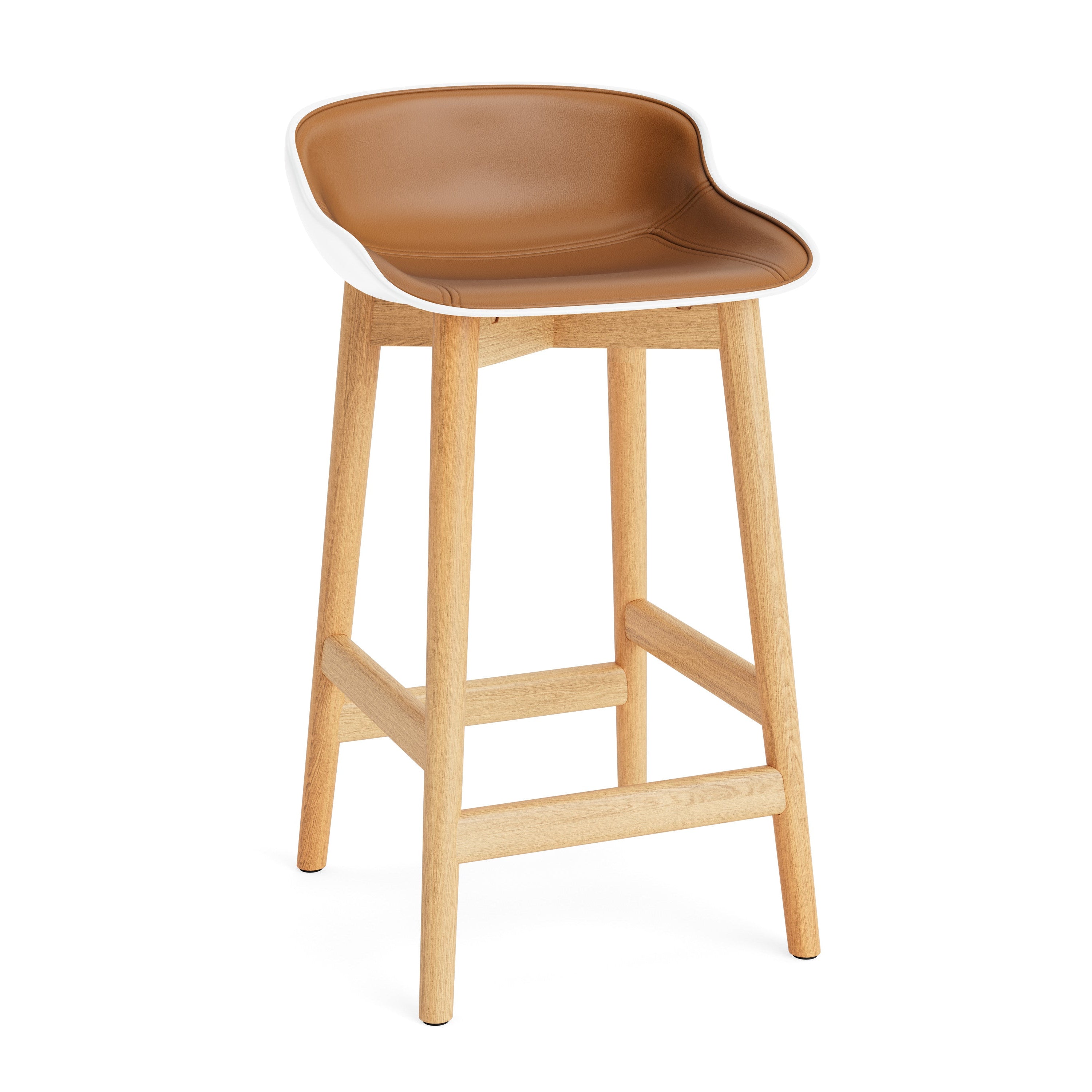 Čalúnená barová stolička HYG biela s dubovým podstavcom