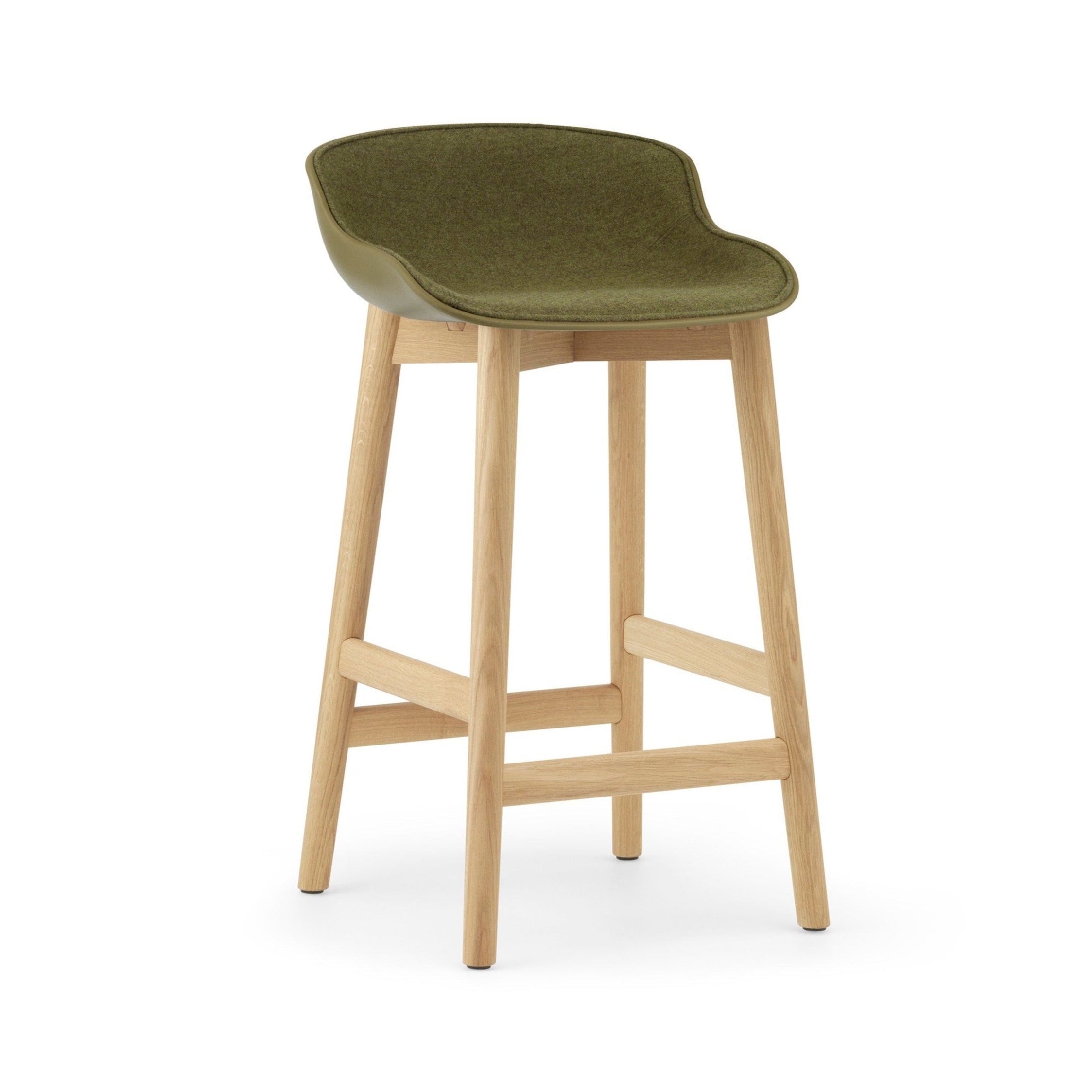 Čalúnená barová stolička HYG olivová s dubovým podstavcom