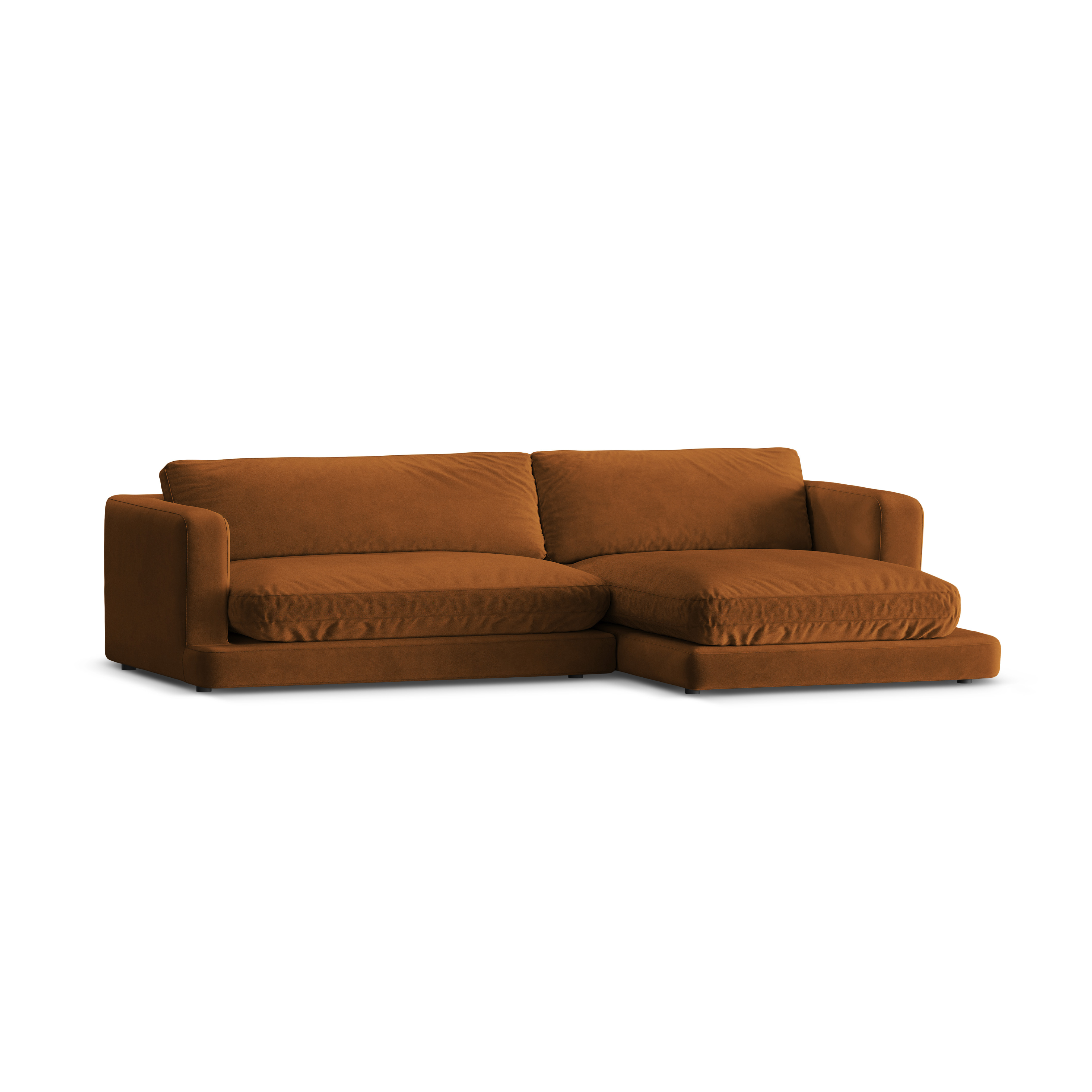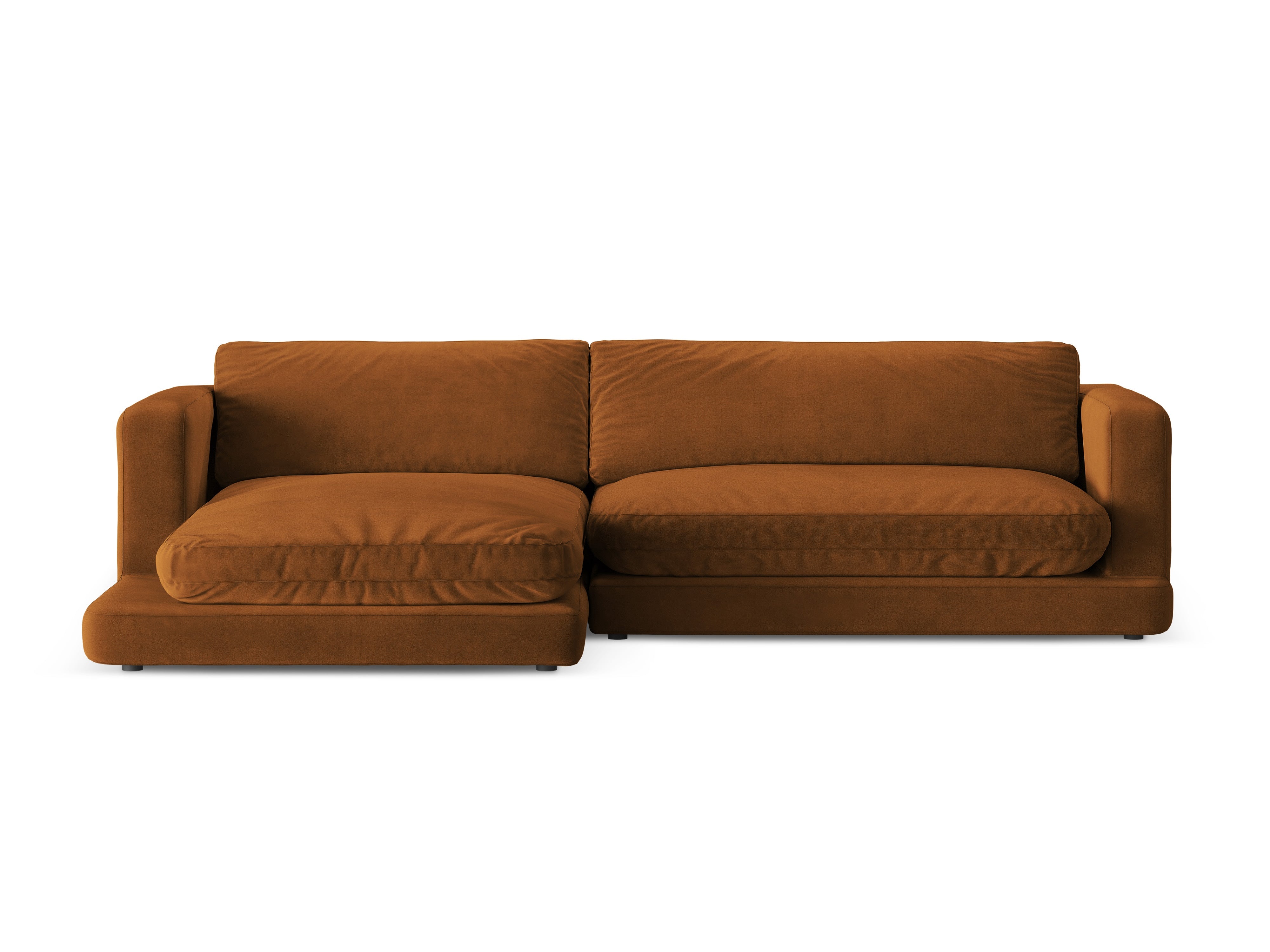 Rohová sedačka z aksamitného materiálu pravostranná DAPHNE medená