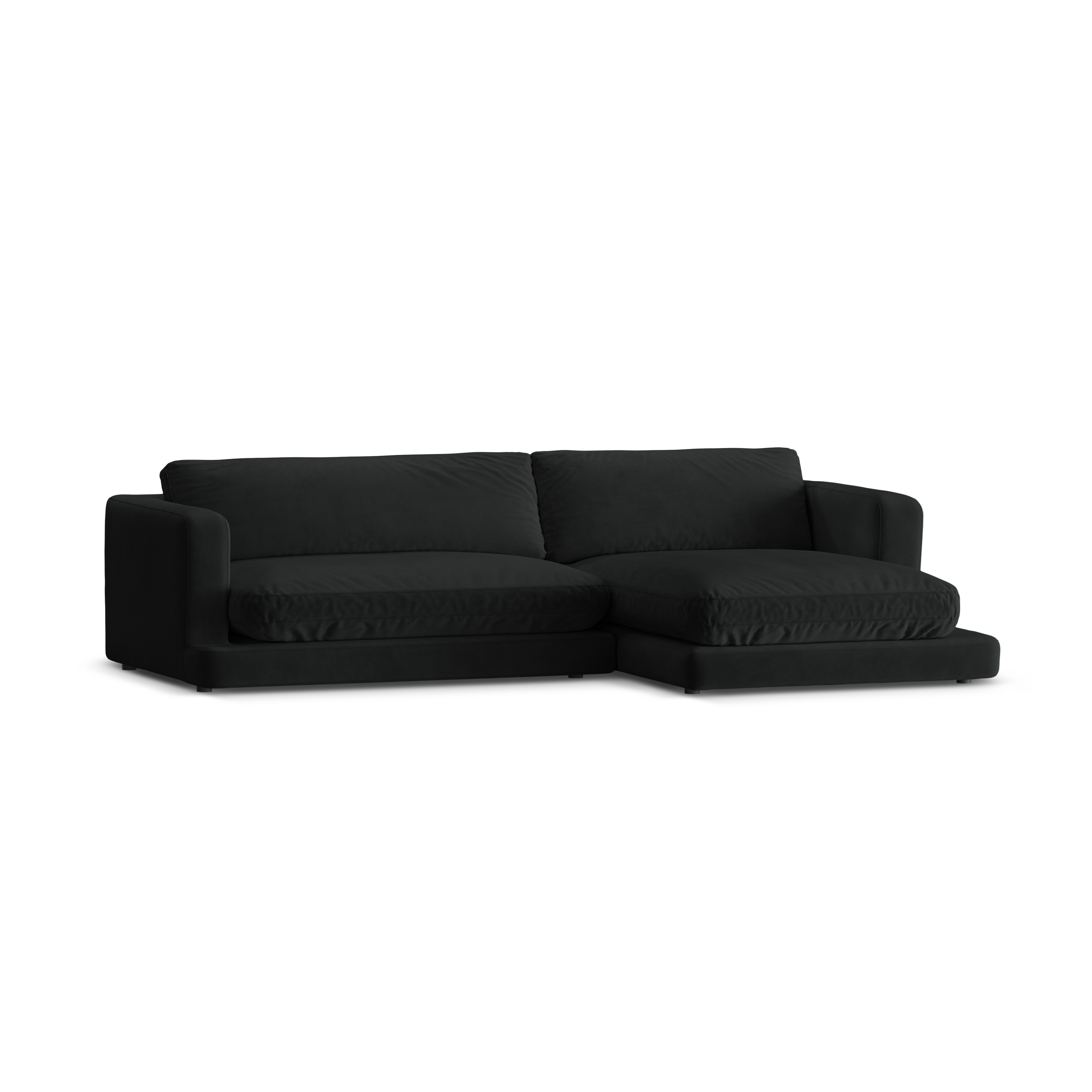 Rohová sedačka z jemného sametu pravostranná DAPHNE čierna