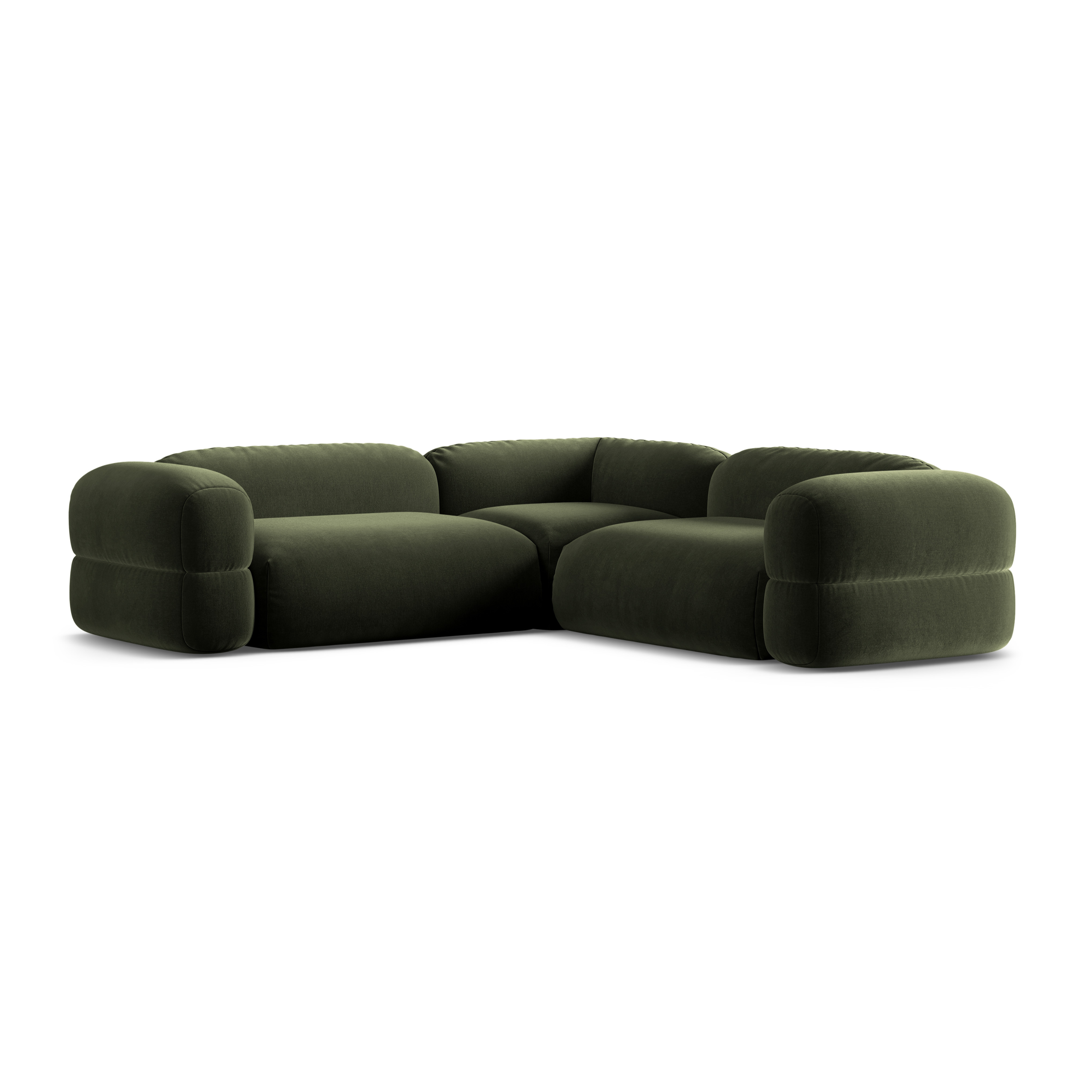 Symetrický rohový gauč z aksamitnej látky ROGER olivový