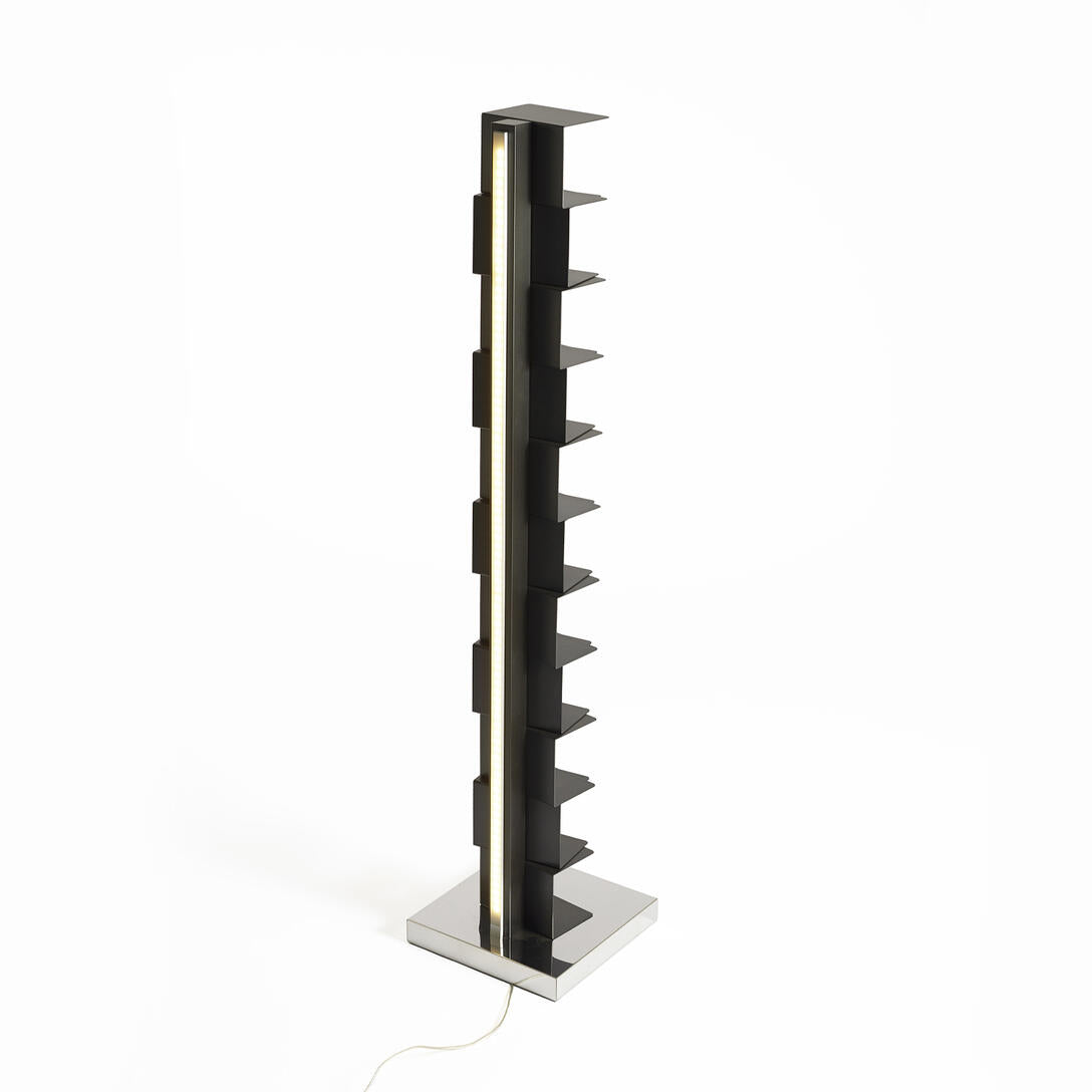 Osvetlený regál PTOLOMEO LUCE čierny so železnou základňou