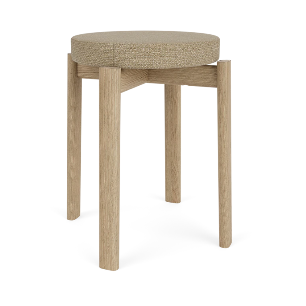 Stołek PASSAGE beżowy boucle z dębową podstawą