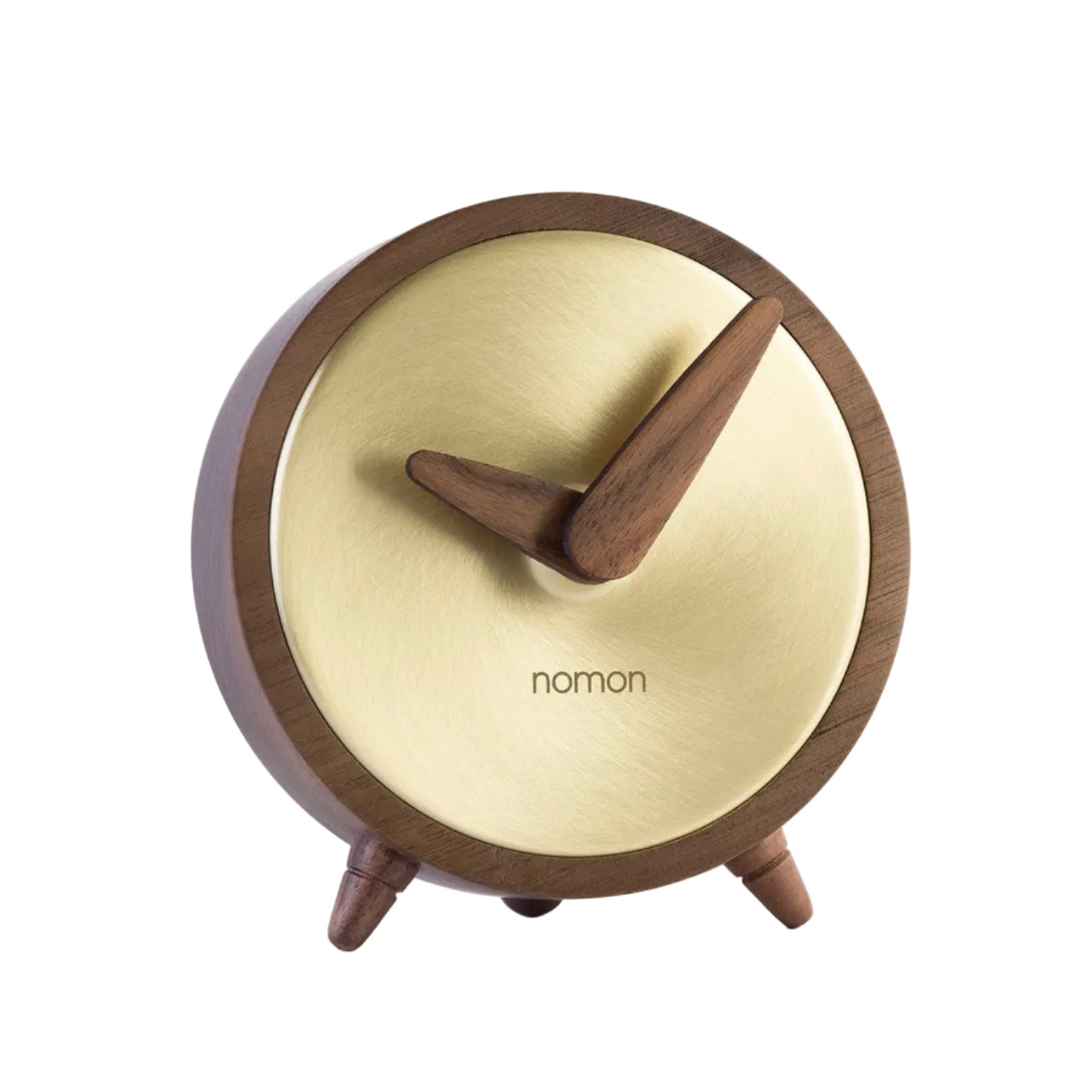 ATOMO walnut wood table clock with brass finish