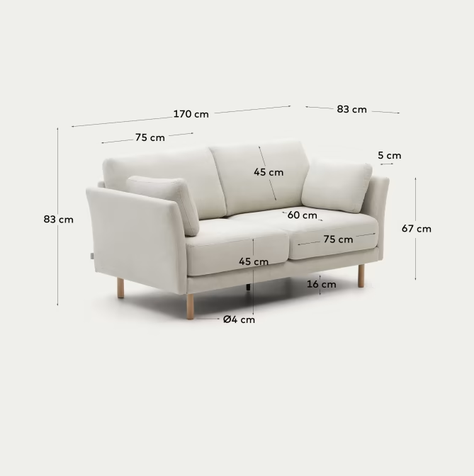 Sofa 2-osobowa GILMA perłowy z czarną podstawą La Forma    Eye on Design