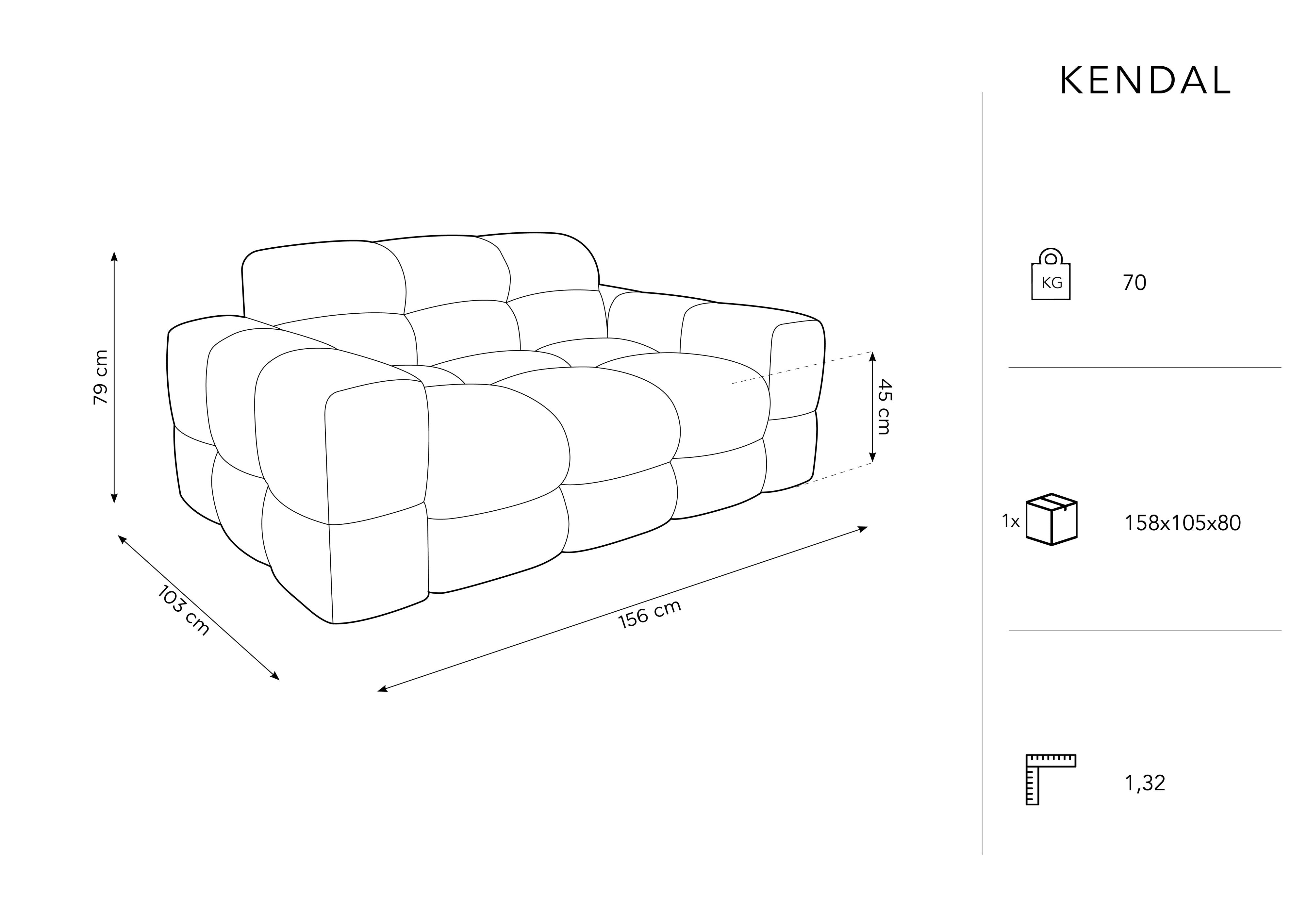 The attractive appearance is combined with the cozy character of the sofa, and the velvet fabric, which is extremely durable and pleasant to the touch, adds a luxurious look to the whole. The limited collection furniture Kendal will create a stunning lounge set and introduce a touch of timeless elegance to your interior.
