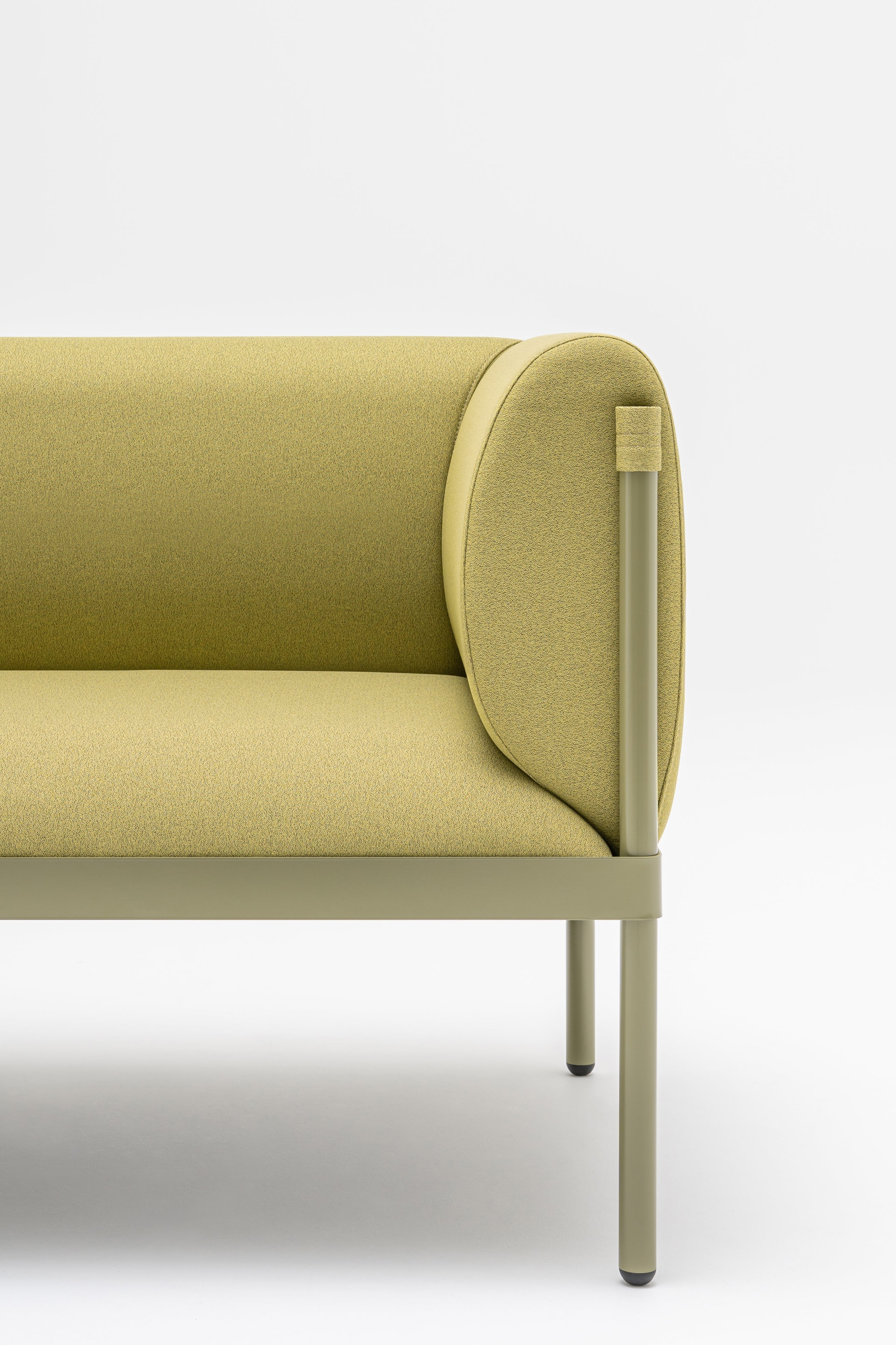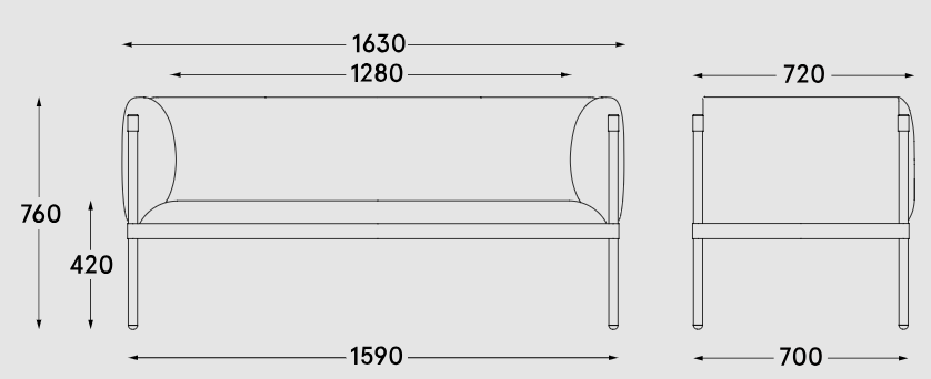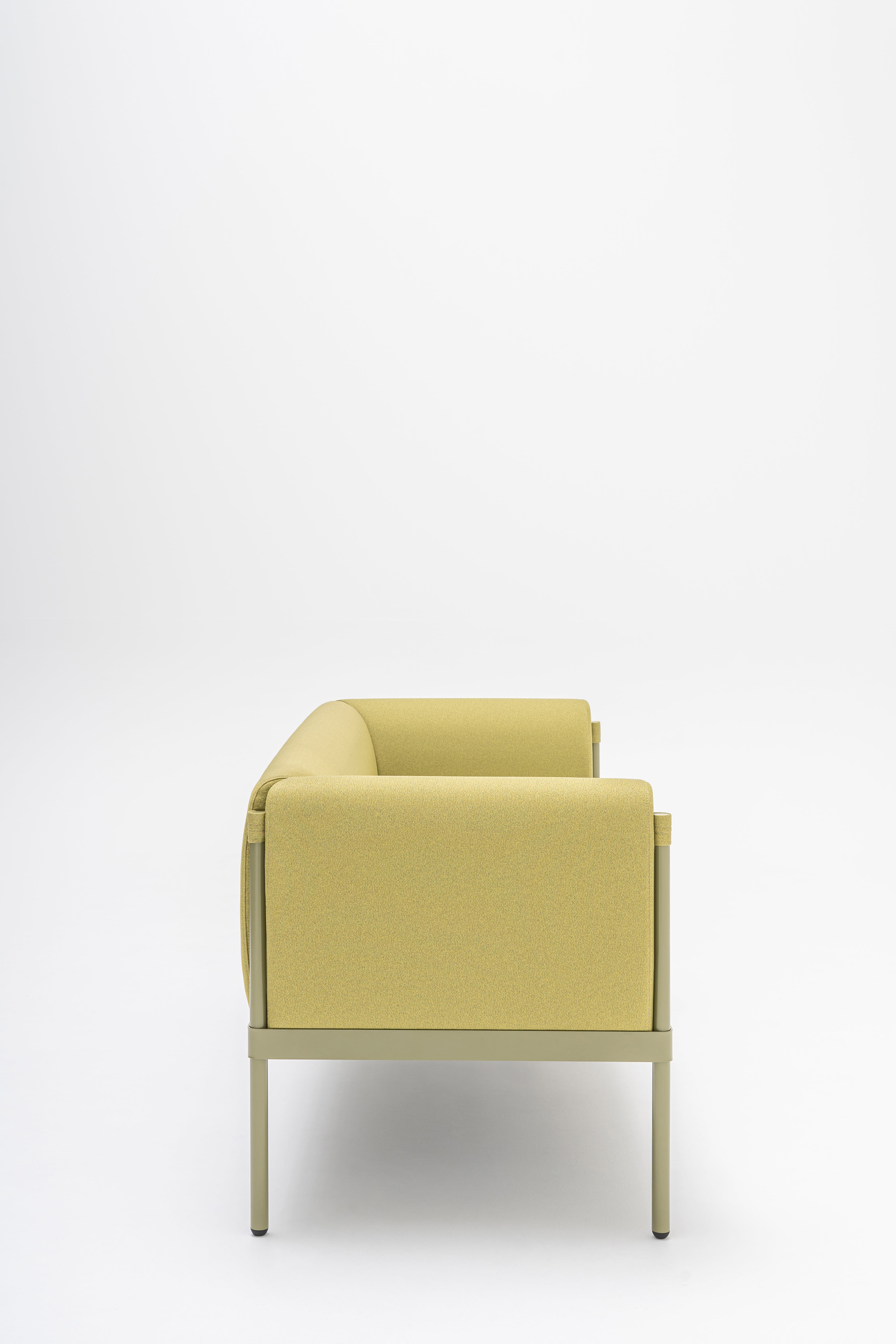 2-person sofa low Stilt is a combination of minimalist design and maximum comfort. The metal frame in matte shades combined with a soft, upholstered seat creates a modern, elegant piece of furniture that will be perfect in various spaces - from the hotel lobby, through offices, to living rooms or public places. Thanks to the wavy springs, the sofa retains its elasticity and comfort, and the cut foam in the seat ensures comfort and prevents collapse.