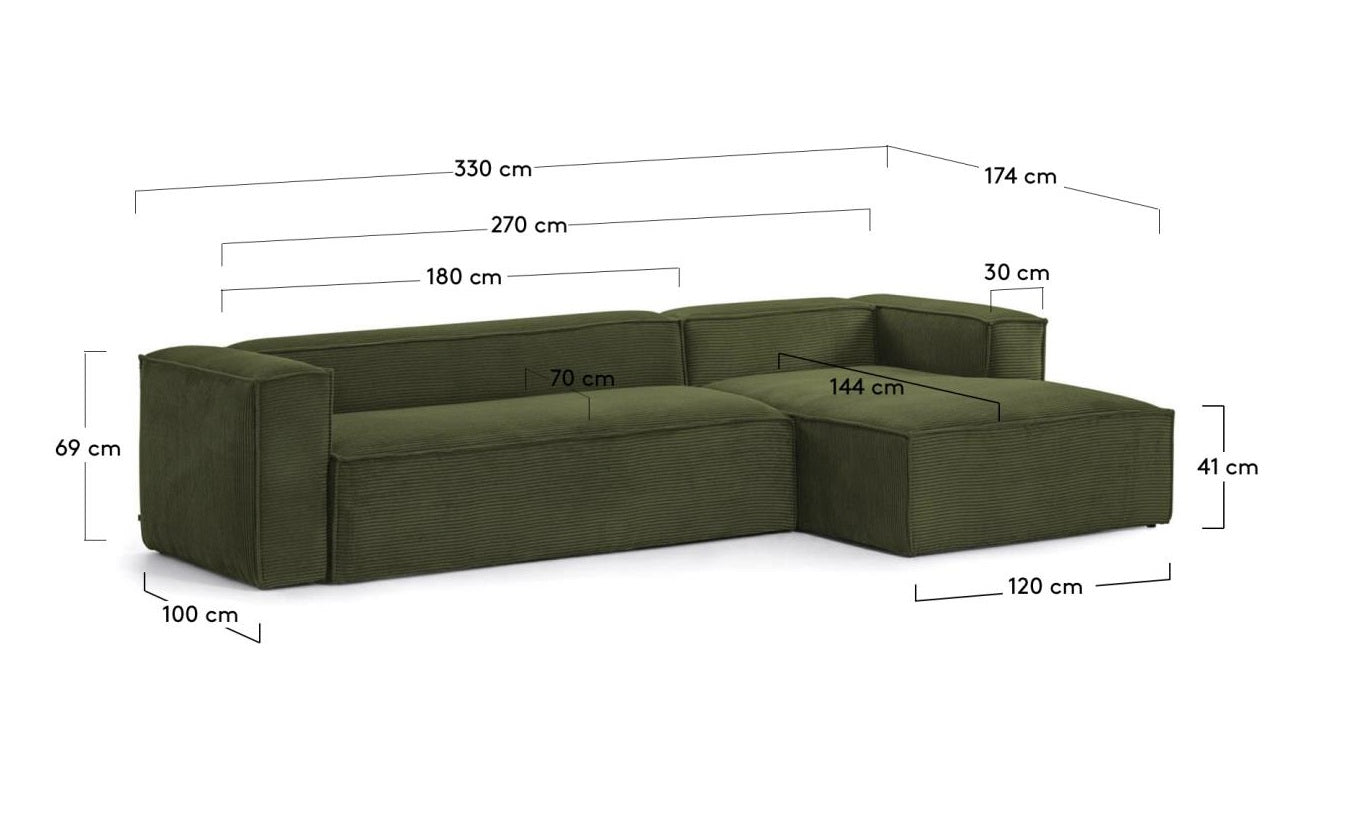 4-Seater Right-Hand Corner Sofa BLOK in Green Corduroy