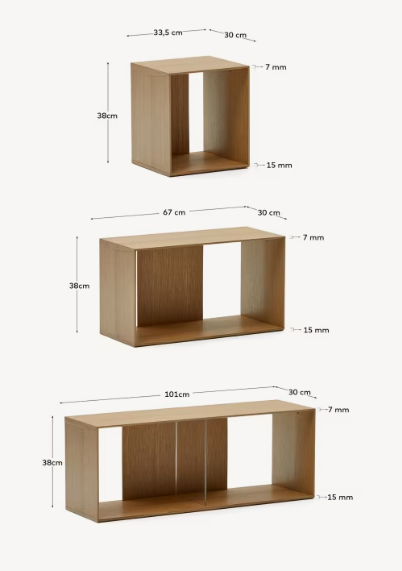 Litto Shelf consists of three medium and three large modular shelves made of high-quality oak veneer. These modules can be combined in any configuration, creating a shelf perfectly tailored to your needs and available space.