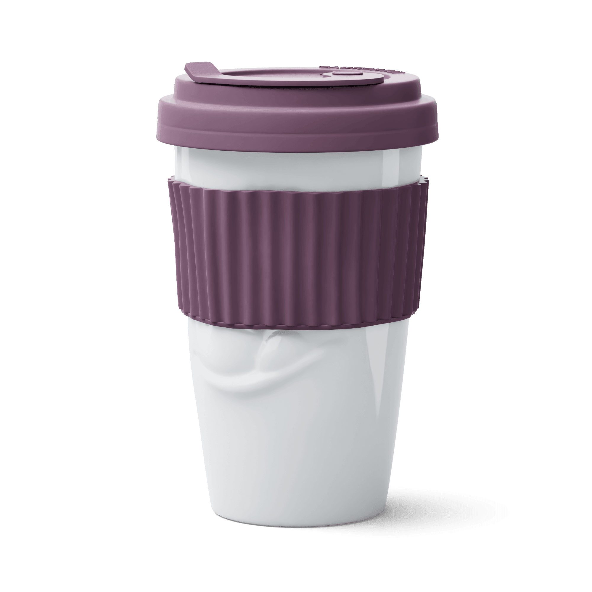 Cup with lid White tasty with an intense amaranth accent is a practical dish that impresses with a hunger grimace. This cup is an ideal travel companion.
