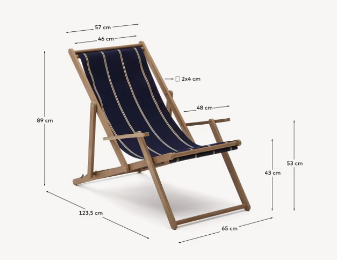 A navy-beige Vilara deckchair with an acacia base