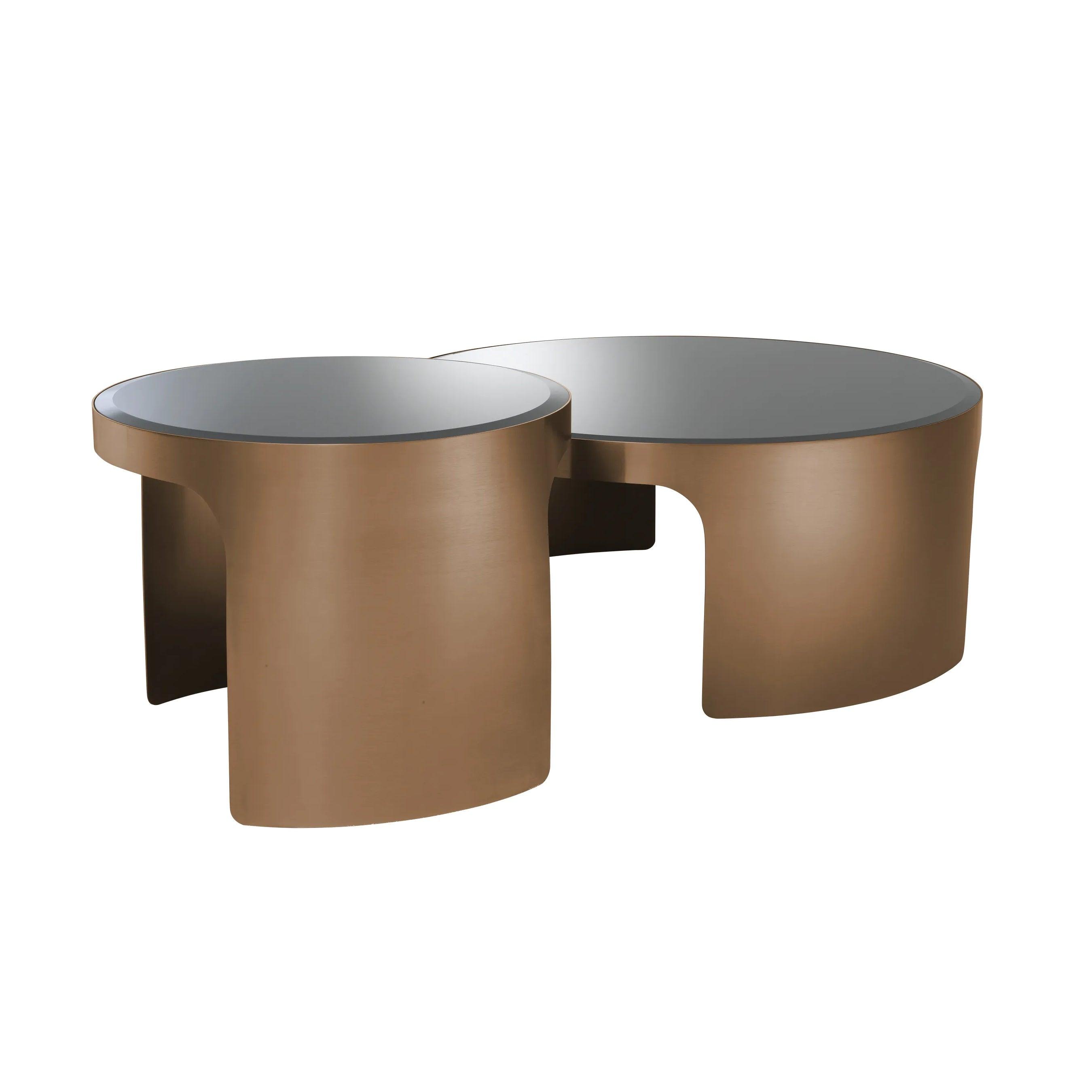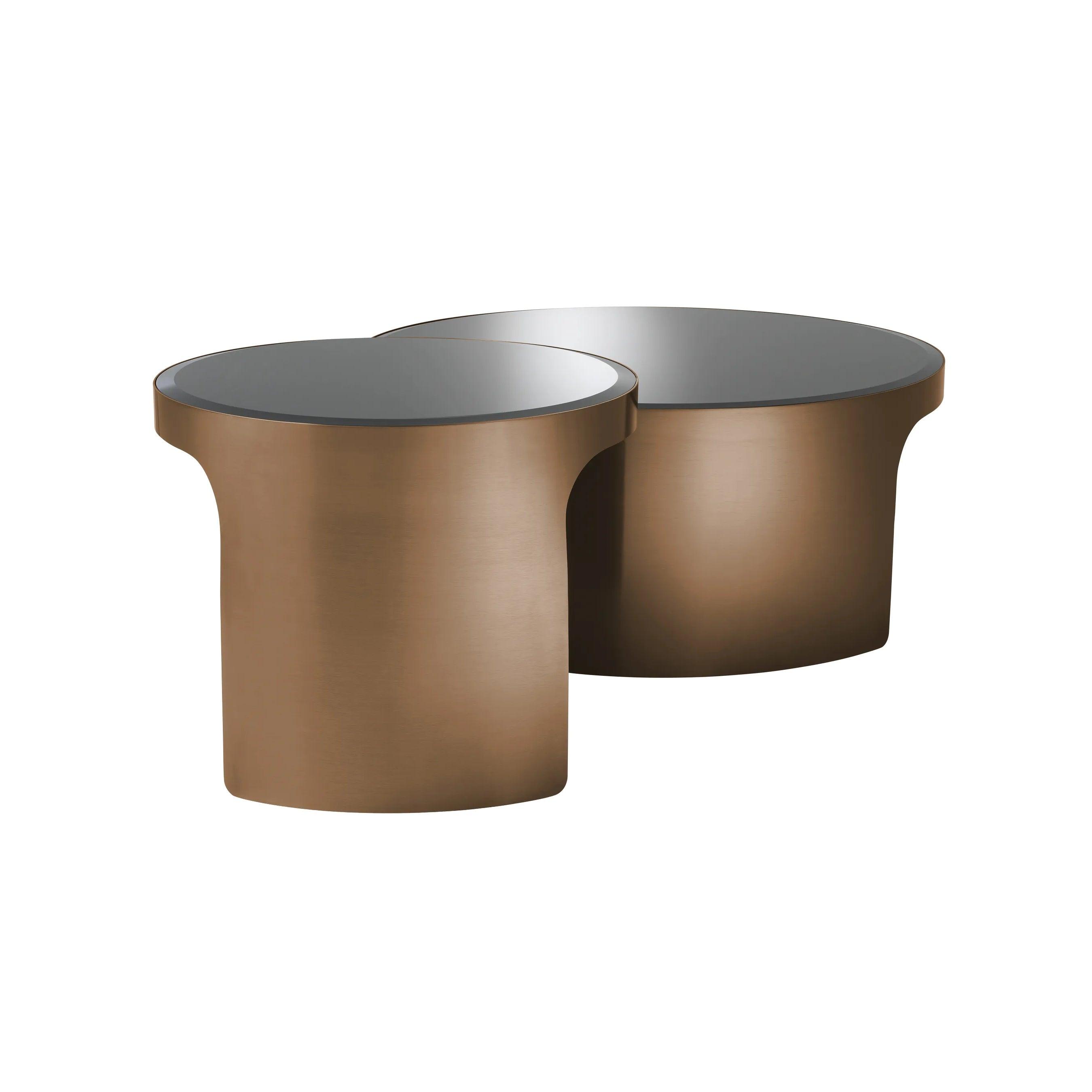 In turn, the basics, made of metal and completed in a shade of brushed copper, give the tables a timeless character. The charm of a metal finish, reminiscent of vintage, perfectly contrasts with the modern and elegant appearance of the mirror countertop.