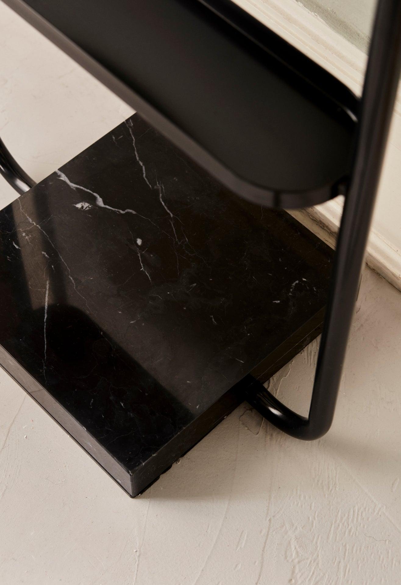 The steel coat rack is set on a sturdy marble base, which enhances both its stability and appearance! Combine it with a bench, chair, shelves, or mirror from the Angui collection to highlight the character of the room.