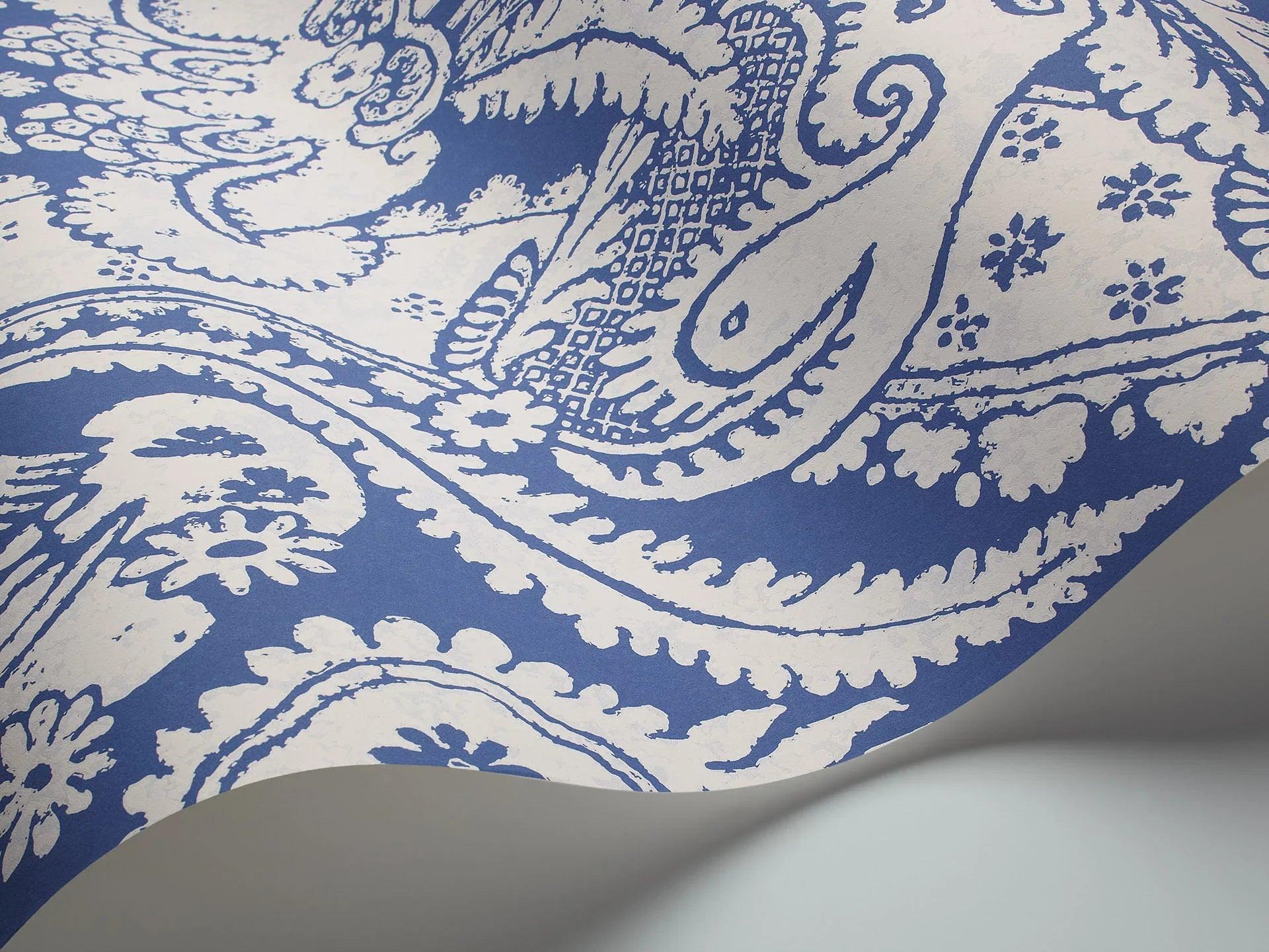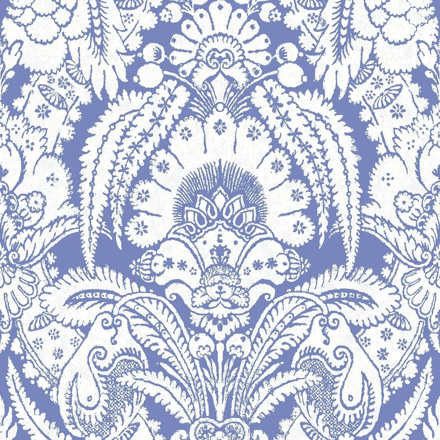 Floral Pattern Wallpaper with Ornaments ALBEMARLE - Chatterton White on Blue