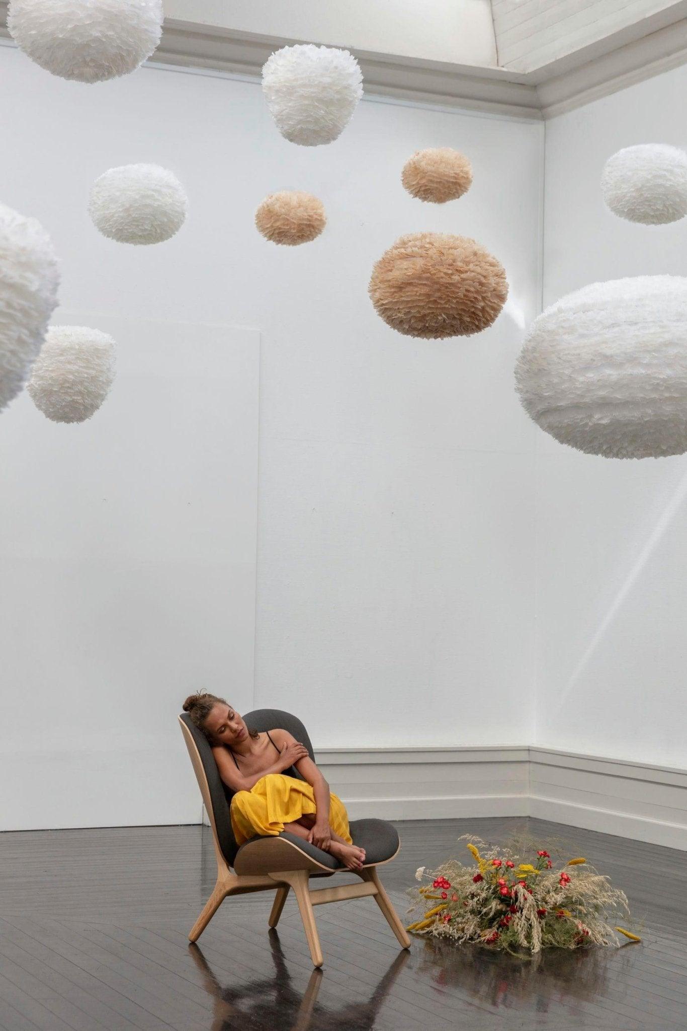 Fotel CONVERSATION PIECE TALL bursztynowy z dębową podstawą UMAGE    Eye on Design