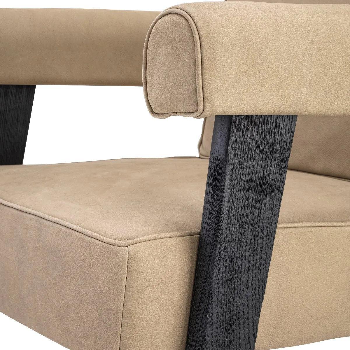 Our star, the beige chair Milo, is made of brown oak, which gives it exceptional durability. And the beige upholstery with piping? Well, it's like the cherry on top - adding even more class and sophistication to the chair.