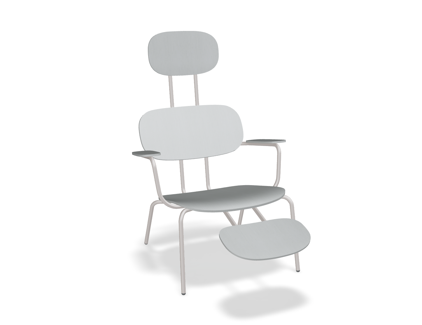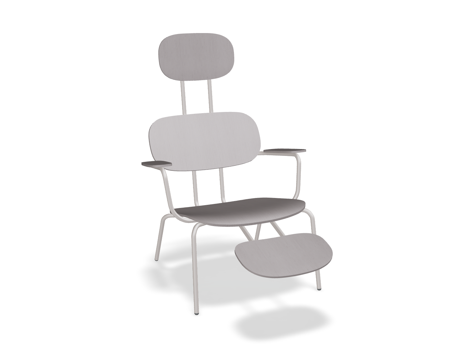 Chair with headboard From the New School collection is a new level of comfort, designed by Studio Form US with Love. The extended version of the chair in this series, equipped with comfortable armrests, an integrated footrest and a headrest, provides an optimal seat angle and a deep relaxing position. Armchair Ideally suited to the lounge zones, hotel lobby or living rooms, and a wide range of upholstery fabrics and the option of a larger, separate footrest additionally increase comfort.