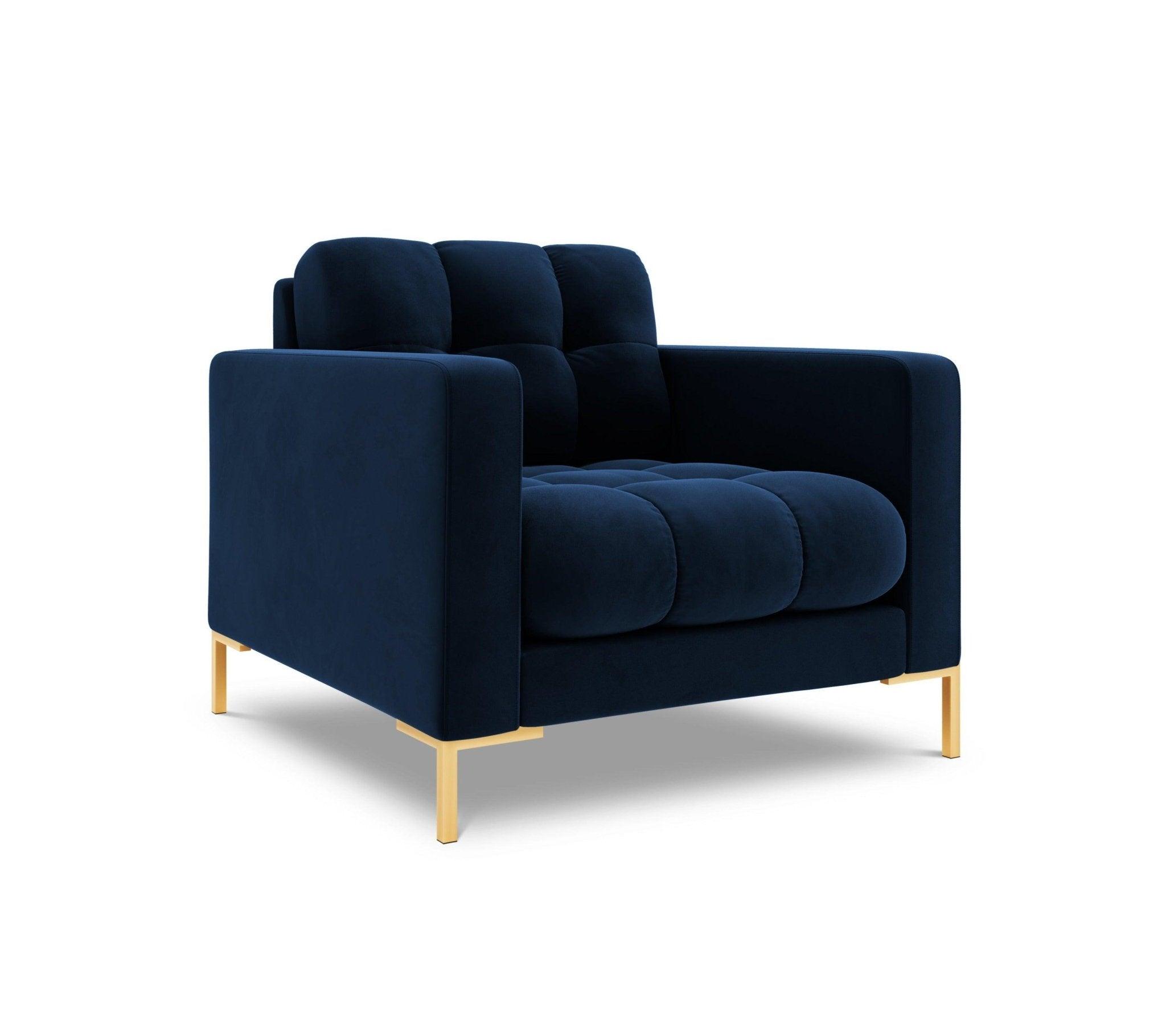 Bali velvet armchair Royal navy blue with a golden base