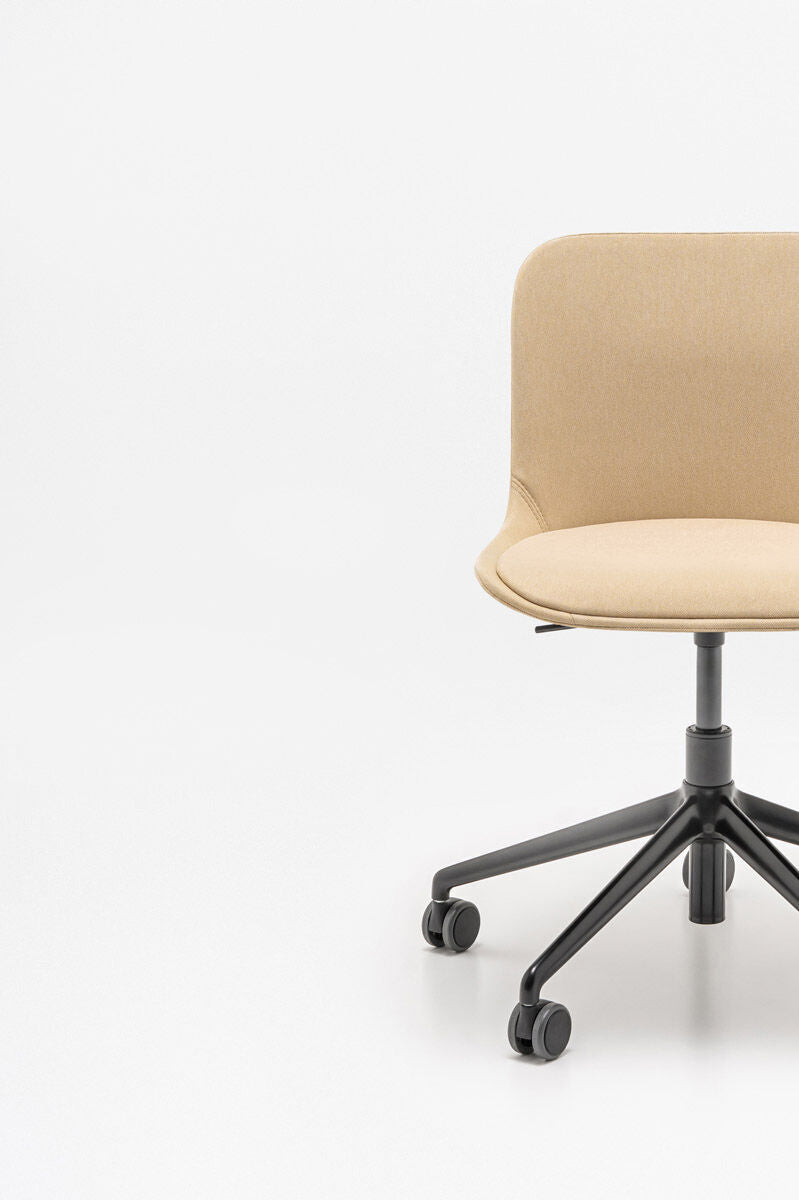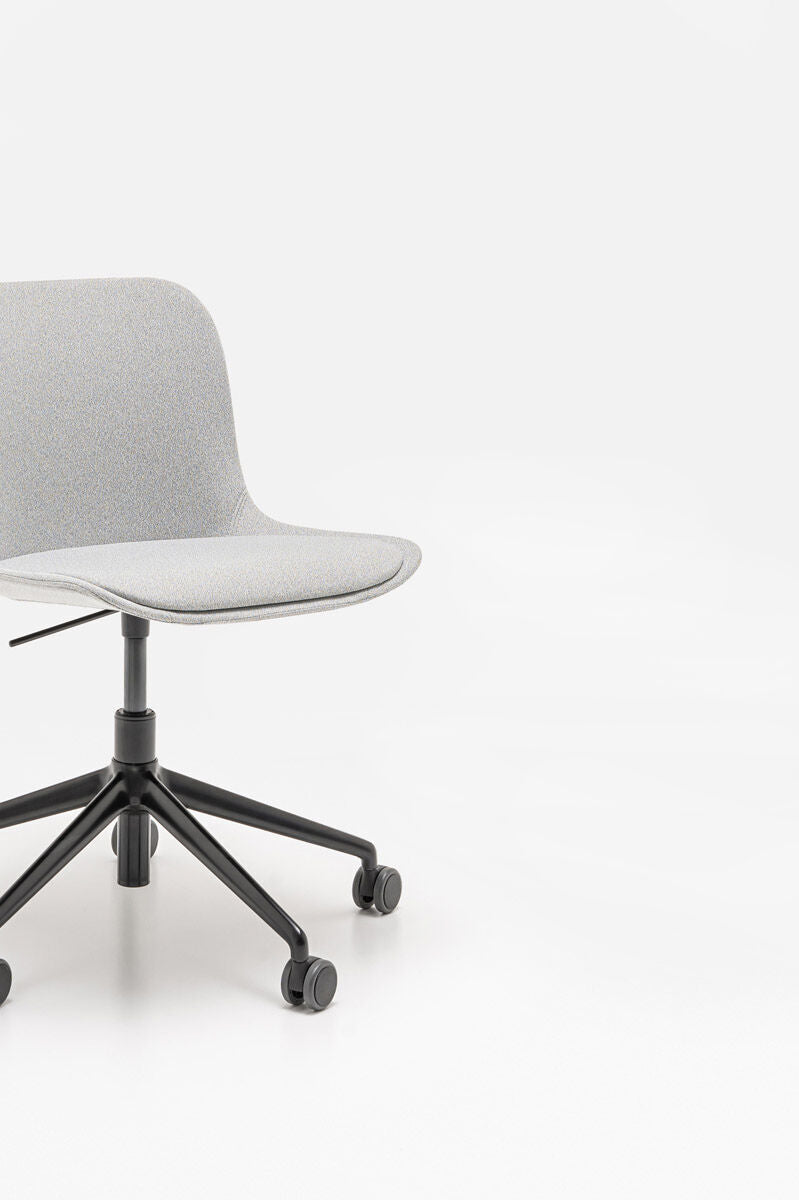 Chair It is equipped with an upholstered seat with a soft pillow, made of plastic, which is easy to care. Aluminum rotary base with height adjustment ensures stability, and the materials used, some of which come from recycled, make them an ecological choice. Baltic 2 Classic is perfect for both offices and home workplaces.