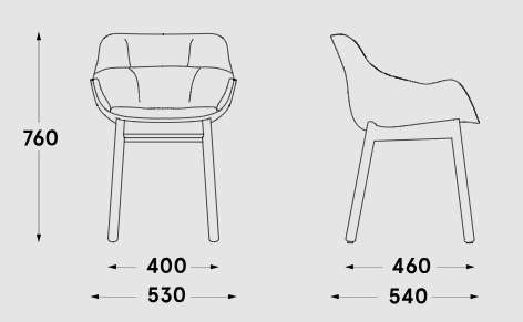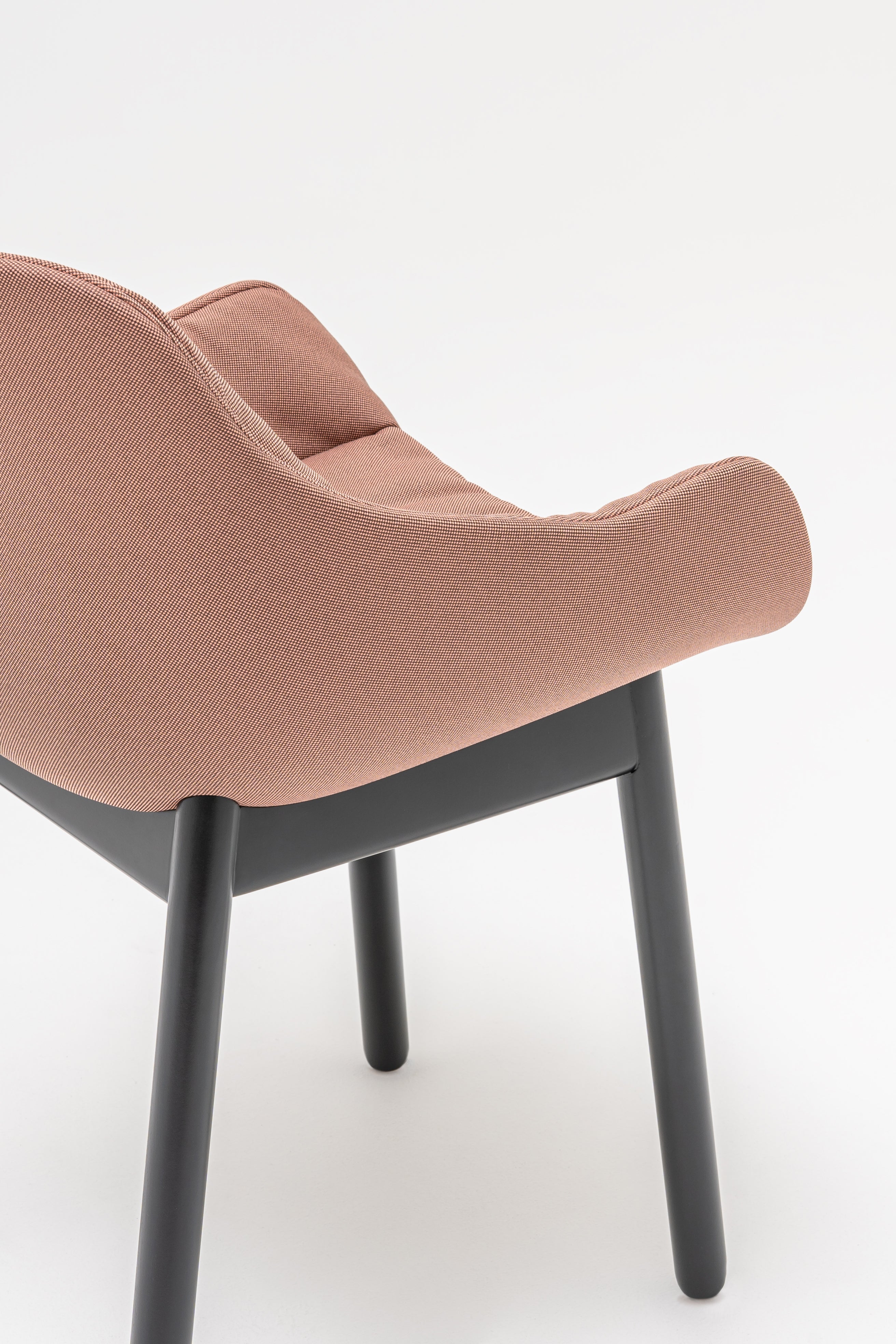 Chair Baltic Soft Duo, distinguished by an unusual crinkled upholstery, has integrated armrests that increase comfort, and its wooden legs give the interiors warm. Made of recycled materials, it is environmentally friendly, ideal for office, residential and dining room.