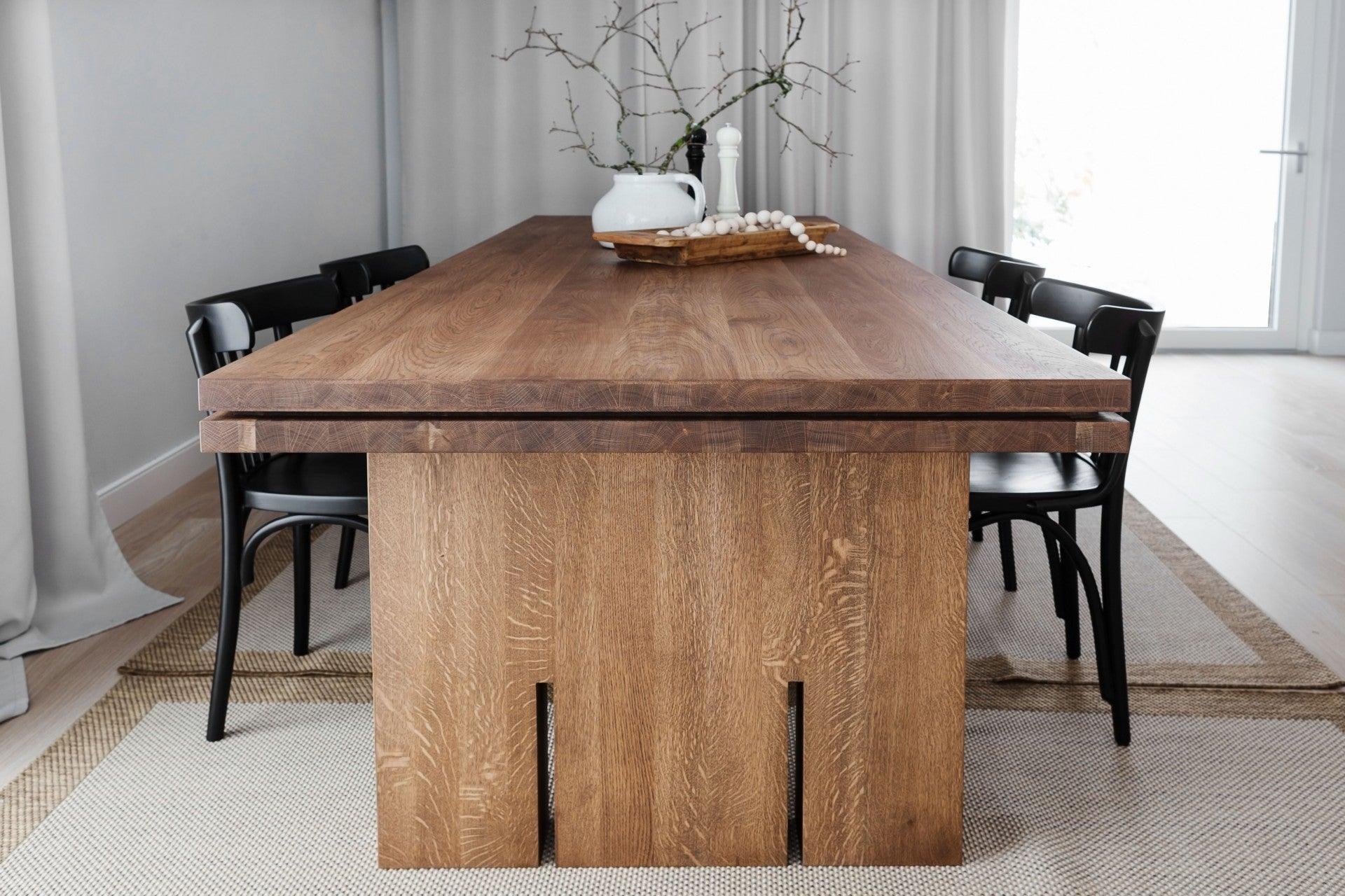 Table Bench, which is part of a collection of tables created in cooperation with the House Loves design studio, is a combination of inspiration with fashion from across the ocean with simplicity and naturalness. These large and massive tables are designed for spacious interiors, and their blocks are enriched with sophisticated details, giving them an individual character. Designers paid special attention to the proportions of the table to keep harmony.