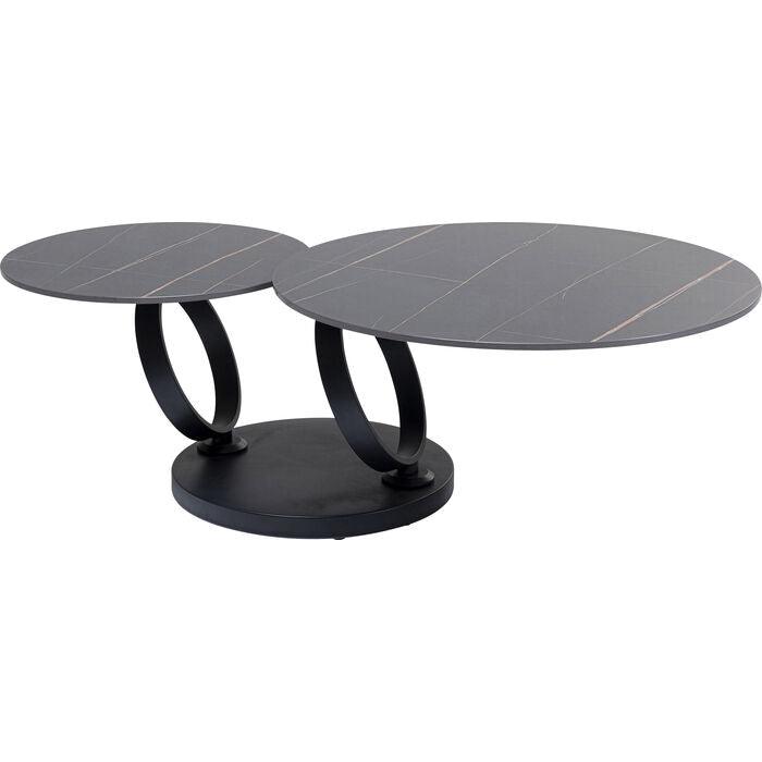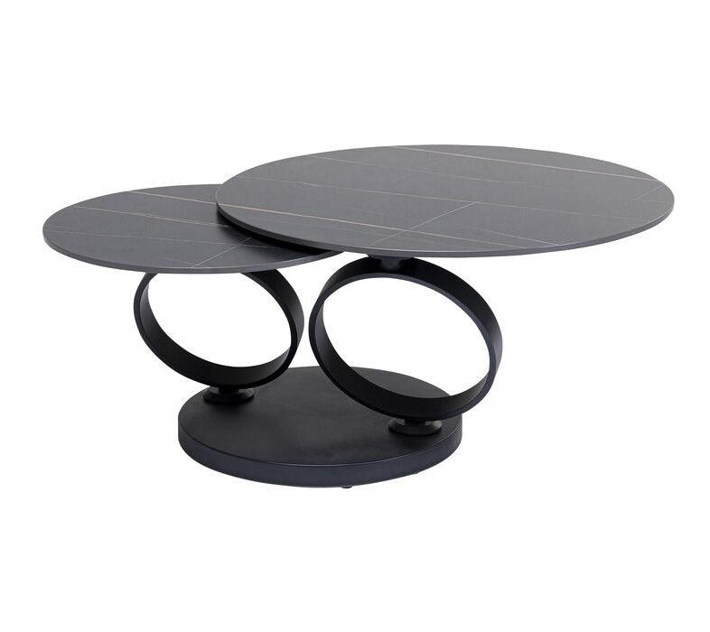 Coffee table Beverly captivates with his appearance and introduces a luxurious atmosphere to the house. The round base and two frames in the shape of steel rings are covered with powder -coated matt black. What's more, Beverly is extremely practical. Regardless of whether it is located next to the corner sofa or sofa, this coffee table easily adapts to your needs. Just turn the large top to always have drinks, snacks and TV remote control.
