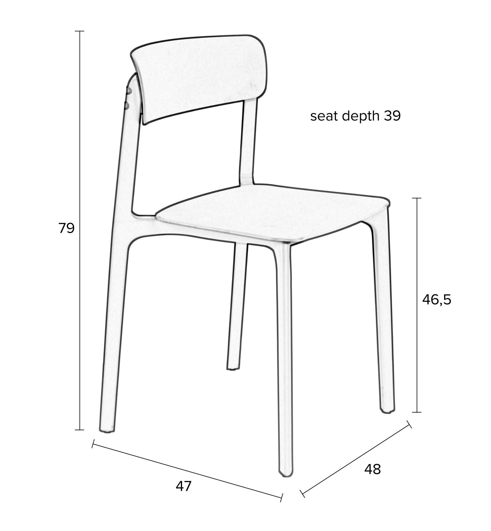 Chair Clive in black is a modern solution for those who value minimalism and functionality. Built entirely of plastic, the chair is light and easy to care for, ideal for people living in a continuous run. The lack of armrests makes them a great choice not only for residential interiors, but also for balconies or terraces.