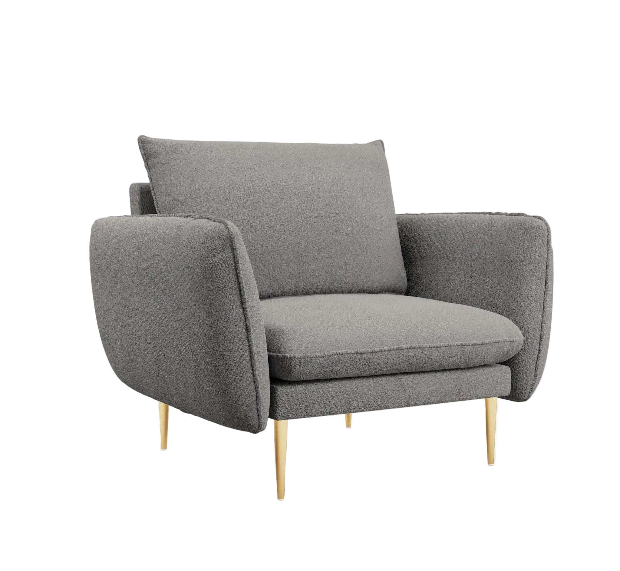 Wysokiej jakości tkanina bouclé charakteryzuje się nie tylko modnym kolorem, ale też dużą wytrzymałością na ścieranie. Sprężyny zig-zag w siedzisku i konstrukcja z litego drewna sosnowego są gwarancją solidności. Fotel do salonu będzie również idealnym uzupełnieniem pozostałych mebli z tej kolekcji Vienna, które zagwarantują idealny wypoczynek dla całej rodziny.