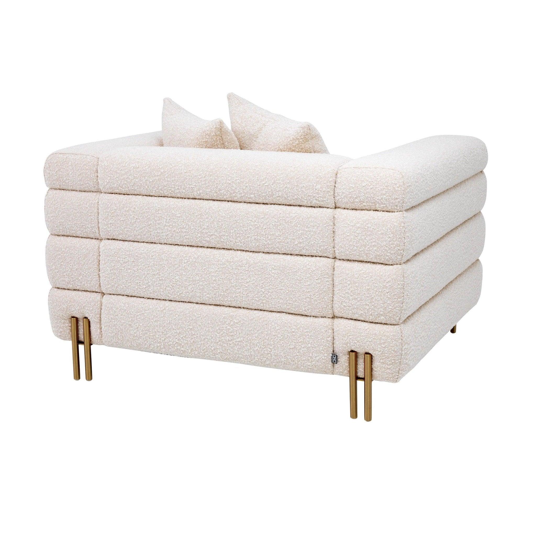York Armchair is a true ode to style and elegance. In creamy bouclé with legs finished in brushed brass, it emanates a unique charm and a touch of decadence.