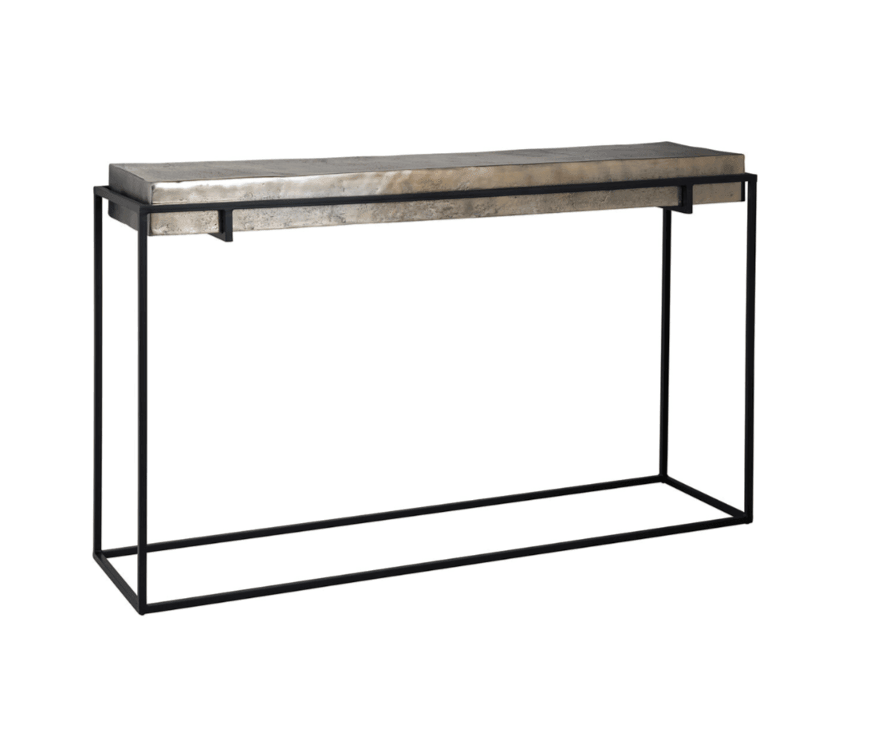 Console Calloway is not only a solid, but also an extremely stylish piece of furniture. Its rectangular top made of cast aluminum in a beautiful shade of champagne gold gives it a luxurious glow and a unique character. The whole has been perfectly combined with black metal accents that add industrial charm and unique design.