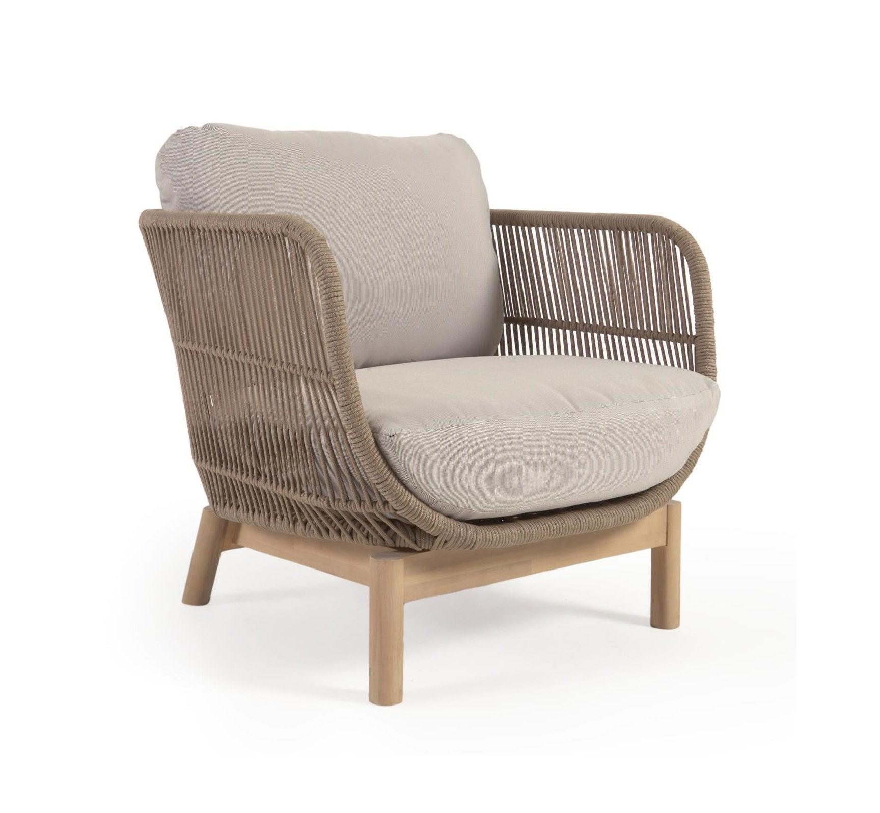 Catalina beige external armchair with solid wood finish