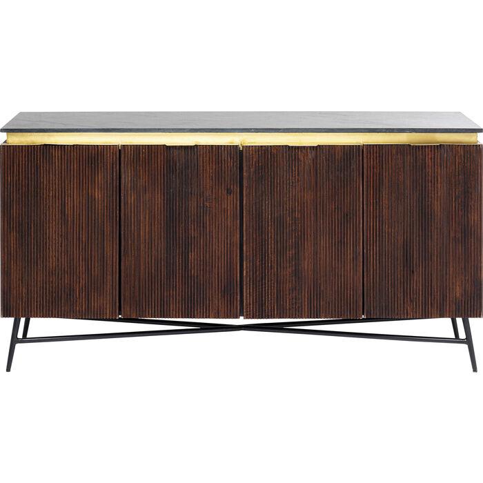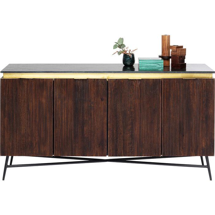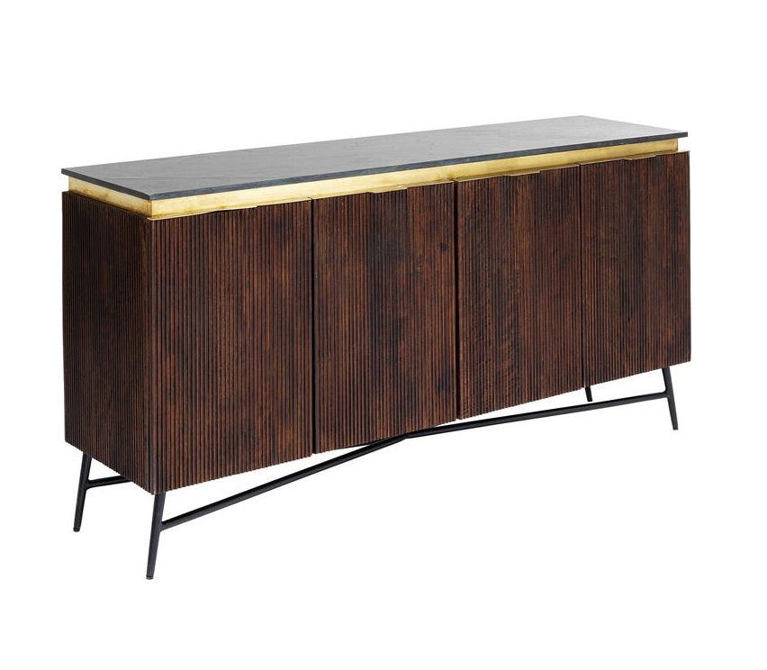 With great attention to detail, in the case of the modern one chests of drawers Everything was thought out. This luxurious piece of furniture undoubtedly belongs to the highest class. The sophisticated, dark varnished mango wood perfectly harmonizes with a dark top and black metal legs. What, above all, makes a dresser unparalleled and eye -catching is the golden base, placed between the top plate and the expressive, nourished fronts.