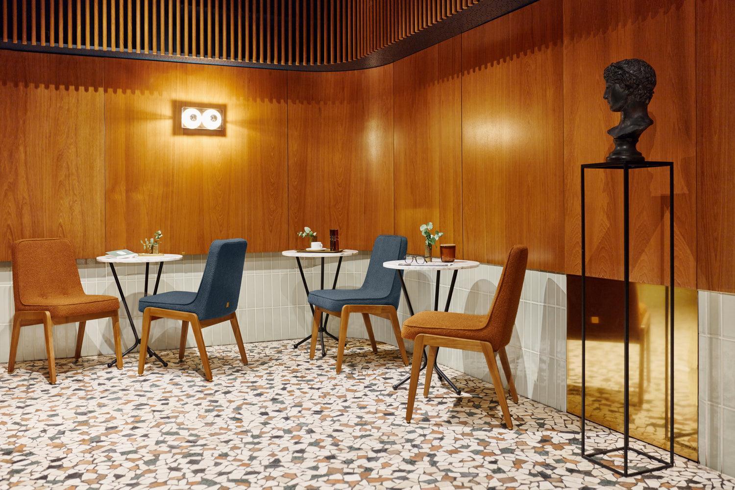 Chair 200-125 VAR in Shine Velvet Mustard fabric, made from natural leather, features a refined, minimalist form in Scandinavian style that captivates with its simplicity and elegance. With its comfortable seat and backrest, this chair is the perfect choice for those who value comfort and functionality.