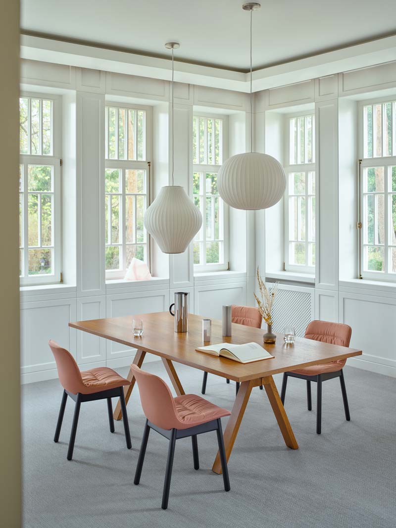 The unusual crinkled upholstery catches the eye, and the classic four -legged base allows for wide use in both residential and professional spaces. The Baltic Soft Duo chair is made of recyclable materials, emphasizing the balanced nature of the project.