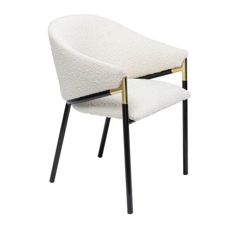 Chair Boulevard is a great choice for anyone who values stylish design and comfort. Rounded backrest and armrests provide comfort, while light -beige covering in a fashionable Bouclé style adds luxury. This is a must -have element for anyone looking for a stylish and comfortable place to sit in the living room or dining room.