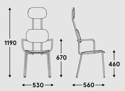 The headrest, which is an extension of the backrest, provides support for the whole back, increasing the convenience of the user. The traditional four -legged form inspired by a classic school chair harmonizes with a modern, minimalist design. High -quality upholstery materials, some of which come from post -consumption recycling, make chair Not only elegant, but also ecological.