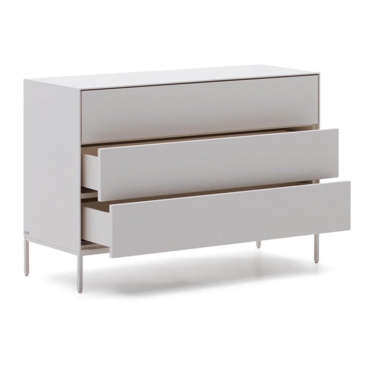 Drawer Chest Vedrana, created by the experienced design team at La Forma, represents a perfect harmony between white lacquer and steel, creating a unique combination of functionality and aesthetics. This unique blend of materials makes Vedrana perfectly fit into various types of homes and design styles, highlighting their elegance and modernity.