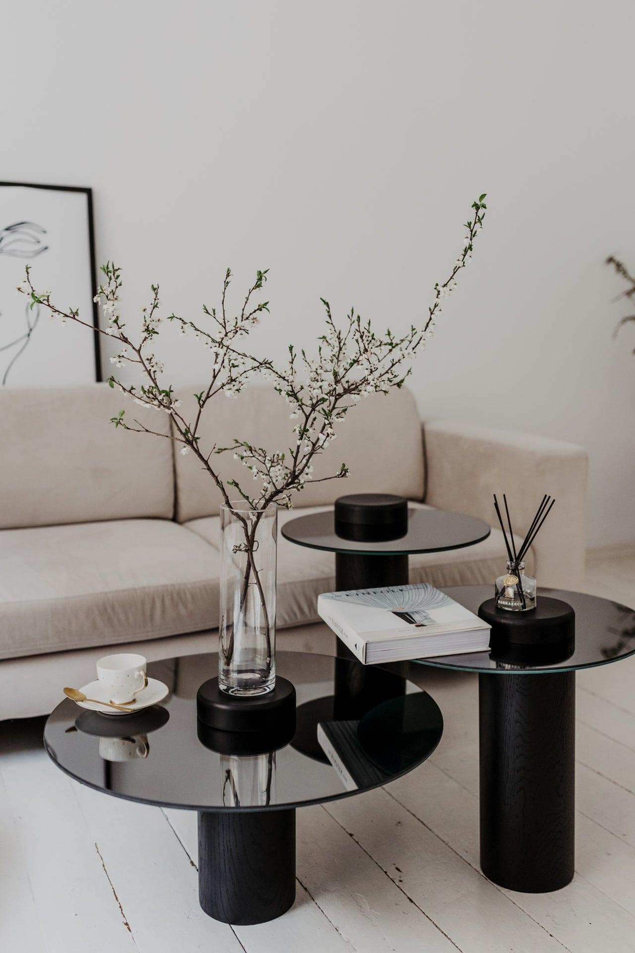 Its subtle shape will work even in a small room, and when combined with the other tables from the set, it will give the interior a distinctive character.