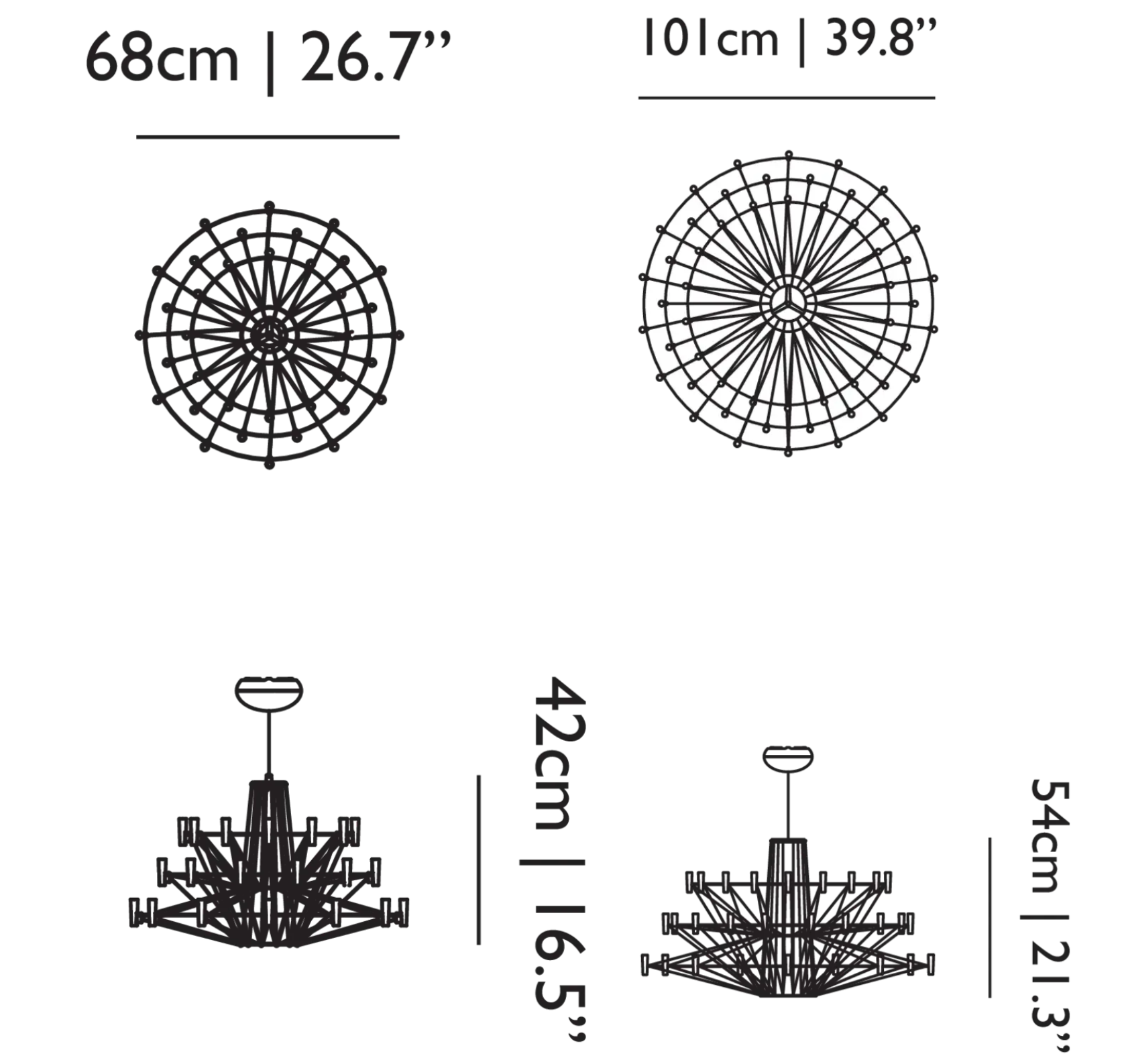 Coppélia Suspended is available in two colors and two models. This technical masterpiece, comparable to high -class ballet, is characterized by a thin and open shape that effectively transports electricity. The chandelier combines art and technology, creating a unique element of decor that introduces the elegance and dynamics of ballet into the interior.