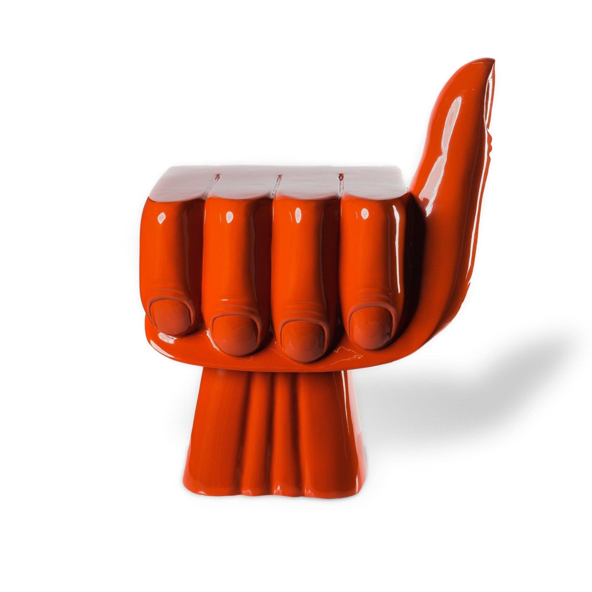 Chair Fist in coral color is an eccentric design that captivates with its appearance and unconventional shape. This model is not only a comfortable seat but also an unusual decoration that will bring character and interesting design to almost any interior.