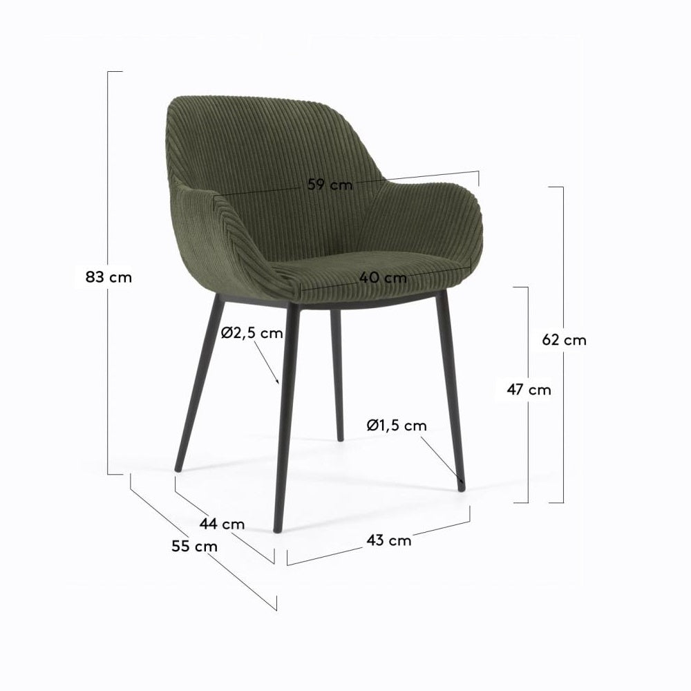 Krzesło sztruksowe KONNA ciemnozielony z czarną podstawą La Forma    Eye on Design