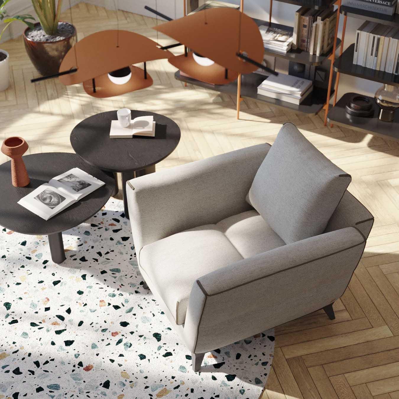 The design of the Corolle lamp is characterized by essential lines that give it a modern and sophisticated appearance. It is a pendant lamp that, in its simplicity and minimalism, emanates modernity and elegance, perfectly suited for contemporary interiors.