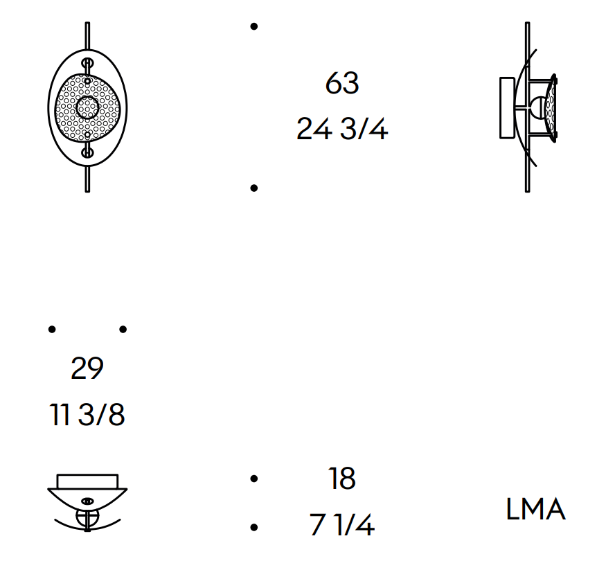 The heart of the Corolle sconce is a central light source, which is subtly wrapped by two headlights, one at the back and one in the front. Thanks to the use of photogravure, the light is reflected in a unique way, always creating various effects. This allows you to illuminate every room in a unique style, from the living room to the office, from the entrance to the bedroom.