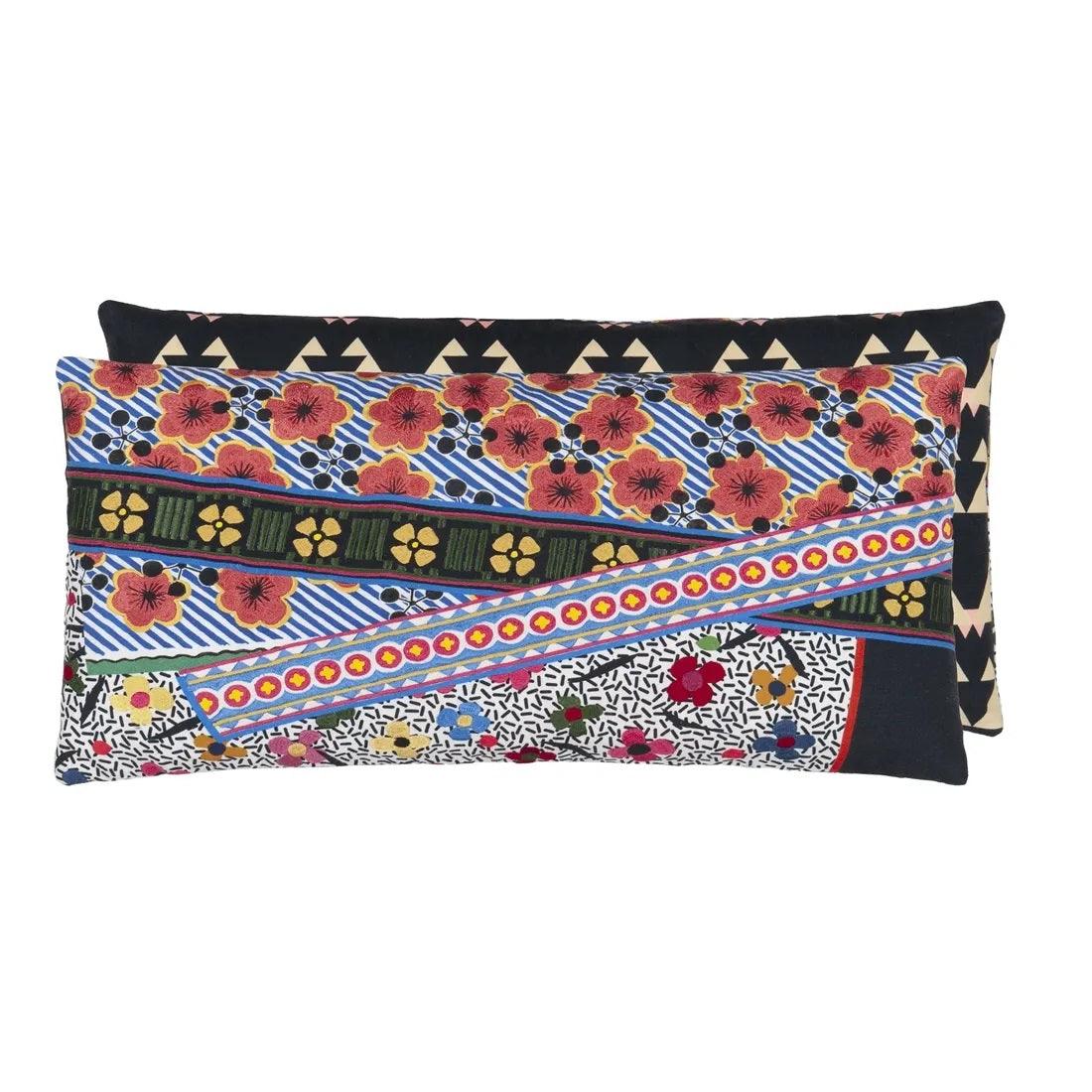 Embroidered details give the cushion a unique character, creating the impression that each flower has been hand-placed on this masterpiece. The bold graphic pattern, digitally printed on cotton satin, creates a stunning reverse of this contemporary cushion. The name Reine D'arles not only adorns it in uppercase letters but serves as a crown for this masterpiece, introducing a touch of royal splendor into the space.
