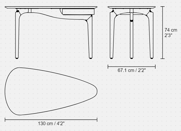 Height to tabletop: 64.5 cm