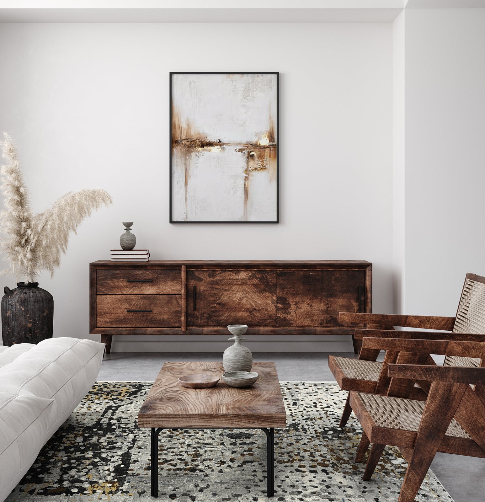 In addition to its visual appeal, the rug offers a range of practical benefits. It improves the acoustics of the room by reducing noise and echo, and its breathable structure helps retain warmth while trapping dust and chemicals, supporting air purification.